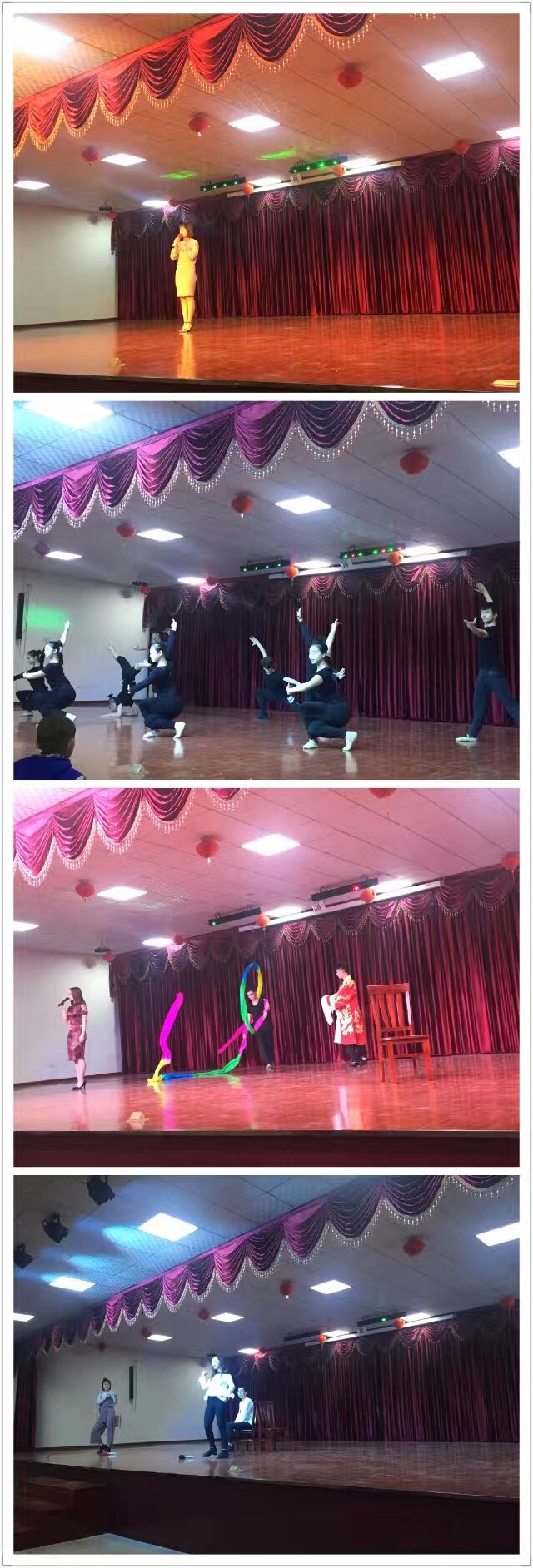 采风后,同学们来到南浔双林古镇的东双林村文化礼堂,开始了紧锣密鼓的彩排,为晚上的文化礼堂演出做准备。18:00,演出正式开始,舞蹈系同学们活力四射的开场舞引爆了乡亲们的热情,气氛随之热烈起来。紧接着,婺剧、小品、朗诵、舞蹈、越剧等节目一个又一个出场。最后一个节目《戏曲人生》,是16级越剧班同学们的原创情景表演,高难度的动作让观众们掌声不断。互动环节,村委文化干部自告奋勇上台学习越剧指法,并演唱了歌曲《好姑娘》,采访后得知他是北京齐鲁音乐学院科班出身,看来我们基层文化阵地也是藏龙卧虎。