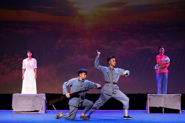 孙学增导演原创作品工作坊——江南红村采风•原创作品汇报《红色•青春》主题晚会,5月17日晚由浙江艺术职业学院戏剧系表演艺术专业学生在浙艺小剧场倾情上演。小品《双别》《七斤半面粉》《挑夫》《映山红》、情景表演《卫生队》《徐昌胜》等7个节目精彩呈现,把观众带到战火纷飞的抗战岁月,不忘初心,感人肺腑。此次演出是表演艺术专业师生们赴长兴革命老区采风后创作出的艺术成果。长兴县委宣传部副部长刘月琴、浙艺院长黄杭娟、院党委宣传教育处处长马向东、戏剧系党总支副书记李旭芳等观看演出。
