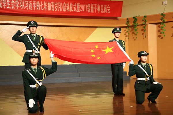 启动仪式在庄严的国歌声中拉开帷幕。仪式上,学校团委书记郑吟为学校主要学生干部代表赠送了《习近平的七年知青岁月》一书。学校第七届学生委员会、学生会向全校同学发出了学习《习近平的七年知青岁月》的倡议,倡议要学习习总书记青年时期矢志不渝的理想追求、爱国为民的家国情怀、勤奋好学的进取精神、求真务实的良好作风和吃苦耐劳的优秀品质。尤其是作为一名学生干部,更要将习总书记当做自己思想上和人格上的榜样,一步一个脚印地将自己塑造成有理想、有本领、有担当的新时代青年。仪式还公布了2016级学校学生会各部门负责人名单。
