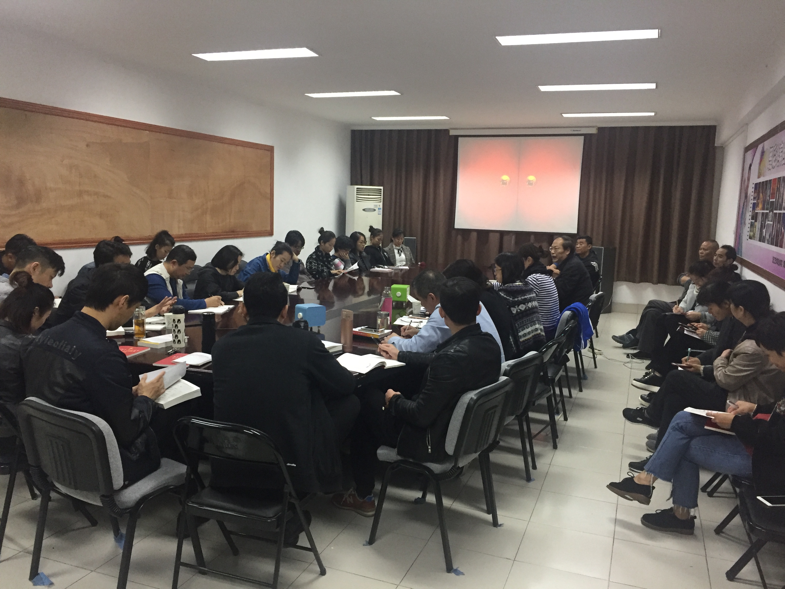 11月14日中午,院党委委员、副院长章轲前往舞蹈系4409会议室为舞蹈系全体教师解读党的十九大精神。
