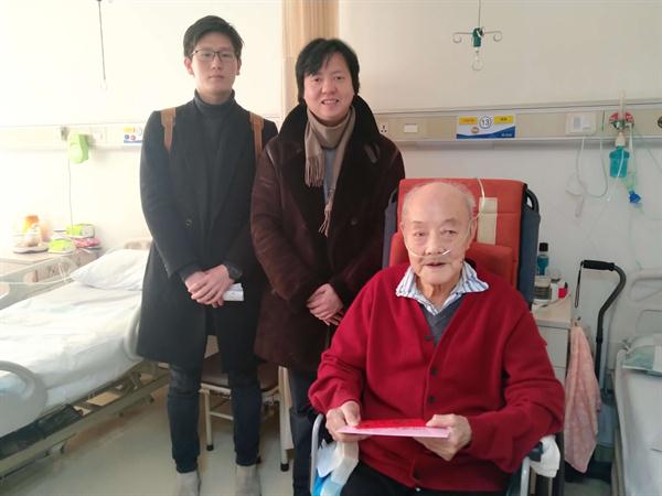 1月18日上午,美术系党总支副书记、副主任孙煜珑与系辅导员龚林峰赴浙江省人民医院看望我校离休干部陈玉祥。陈老先生现已97岁高龄,女儿一直在身边照顾起居。