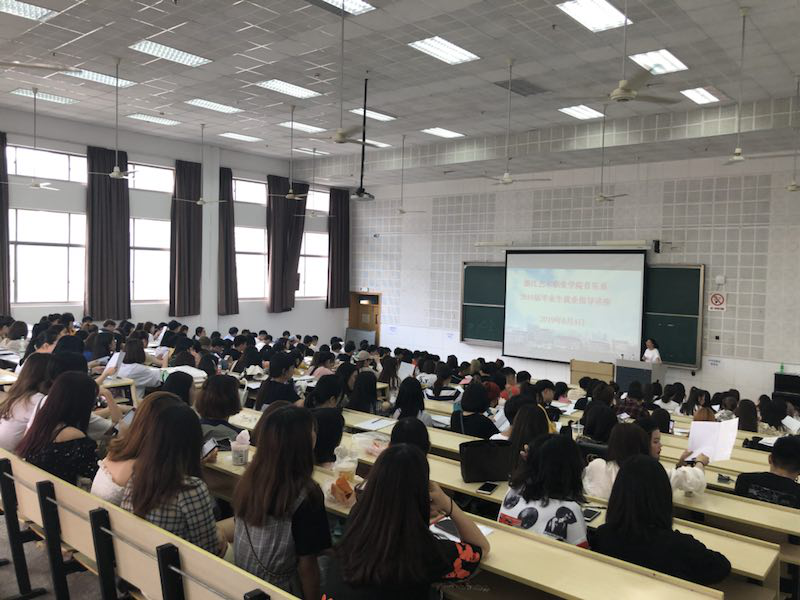 6月4日,音乐系2019届毕业生就业指导专题讲座在7号楼阶梯二教室举行,毕业生辅导员陈丽丽解读就业与职业规划相关政策和疑问,全体毕业生、全体辅导员等参加讲座。