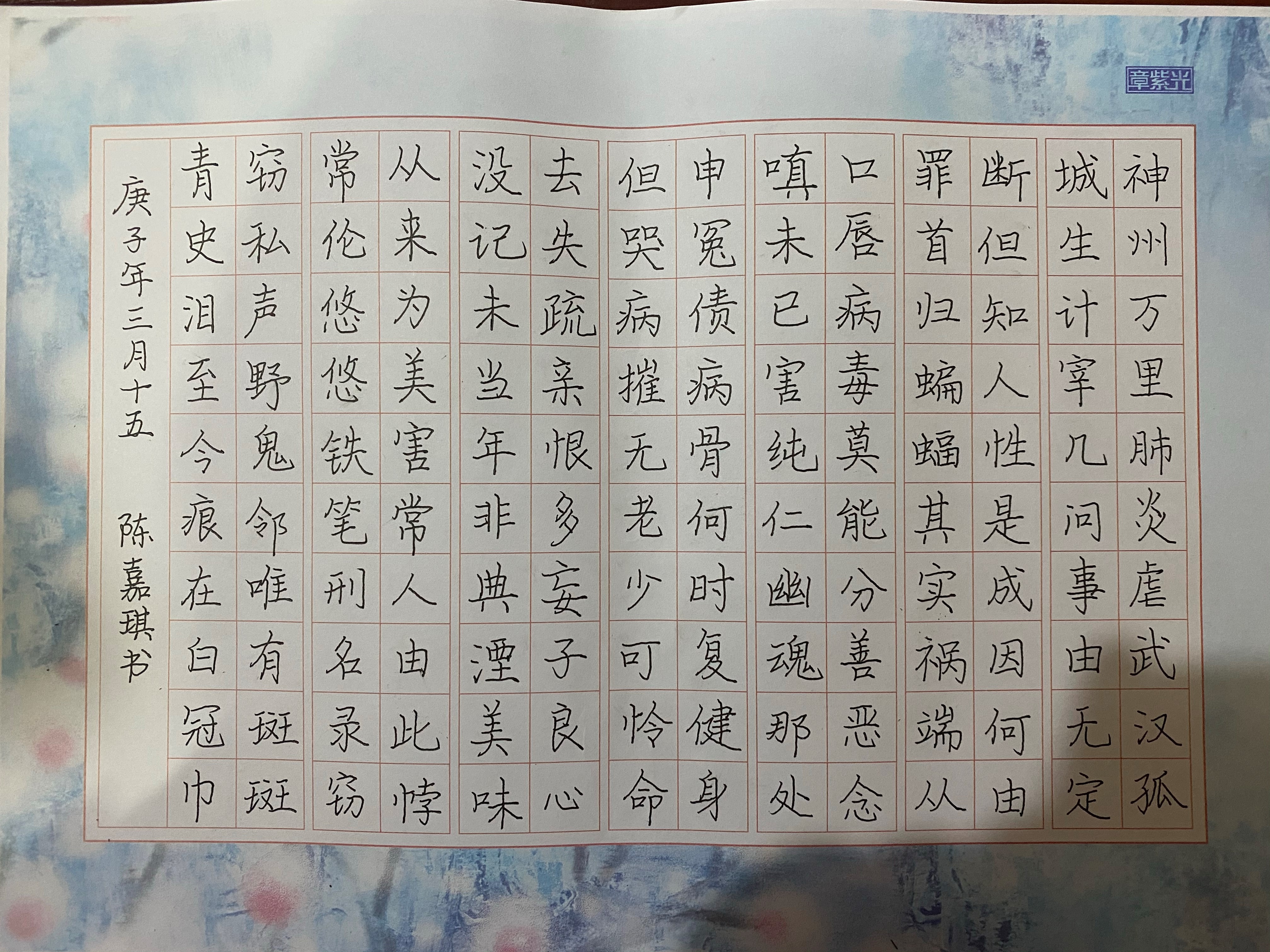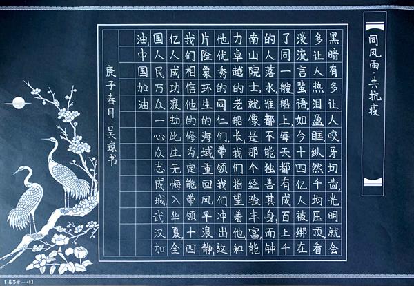 为进一步落实好学校各项防控措施,加强对师生宣传、教育和引导,振奋精神、鼓舞士气、讴歌英雄、传播正能量,音乐系党总支近期举办了“笔墨抒怀 抗击疫情”硬笔书法比赛。