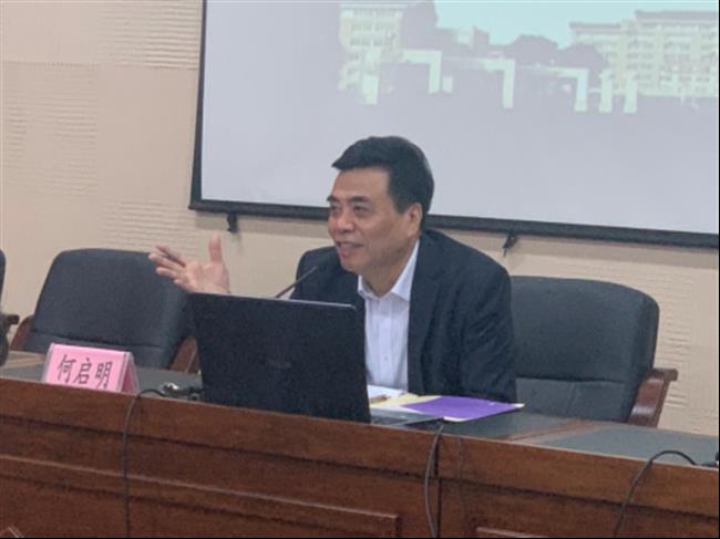 11月17日,省委宣传部原副巡视员、省委宣讲团成员、浙江大学特聘教授何启明做客音乐系“红色音乐讲堂”,为音乐系民乐教研室全体教师及表演(越剧音乐伴奏)专升本班学生作“学习习总书记重要讲话精神 进一步坚定文化自信”专题讲座。