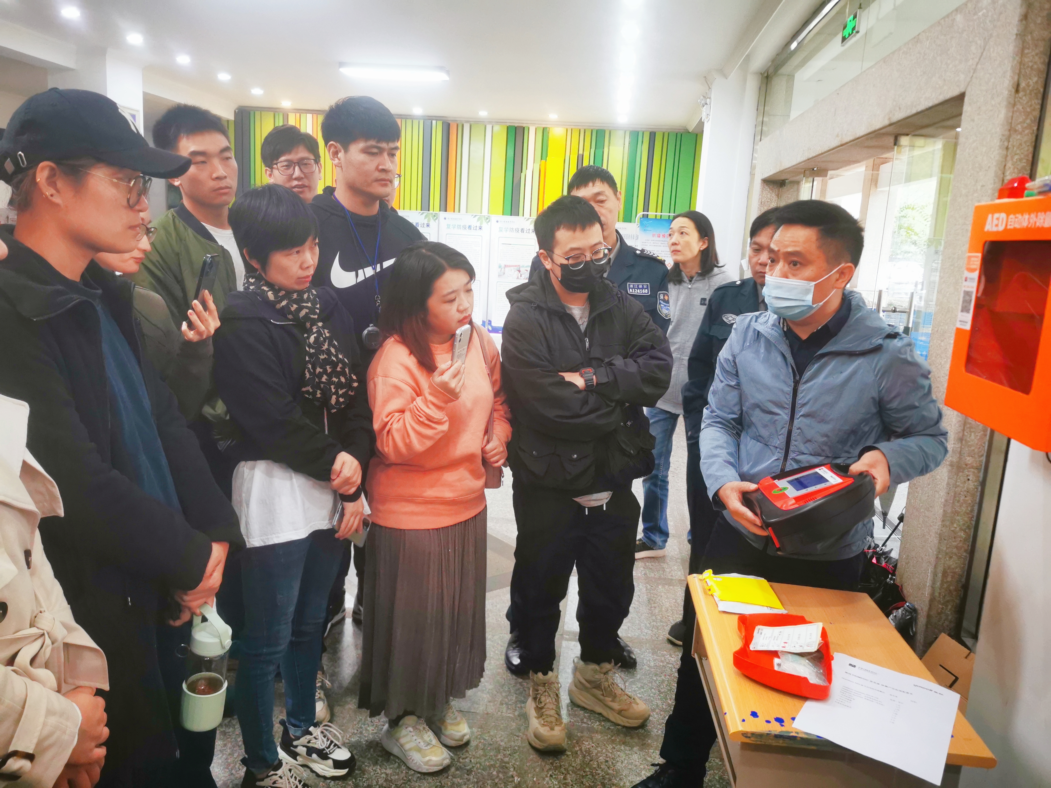 (AED自动体外除颤仪,放置于8号楼一楼大厅)