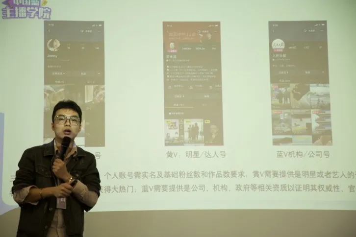 在专业交流环节,首先由中国蓝主播学院的陈义安老师为师生们带来了《个人IP账号运营与推广》的专题分享。以新媒体APP抖音为例,详细介绍了个人IP账号设置及孵化方法、垂直类短视频制作、账号流量的商业转换过程、新媒体直播产业的现状及市场分析等方面,同时也与在场的同学们就未来专业发展方向互动交流。