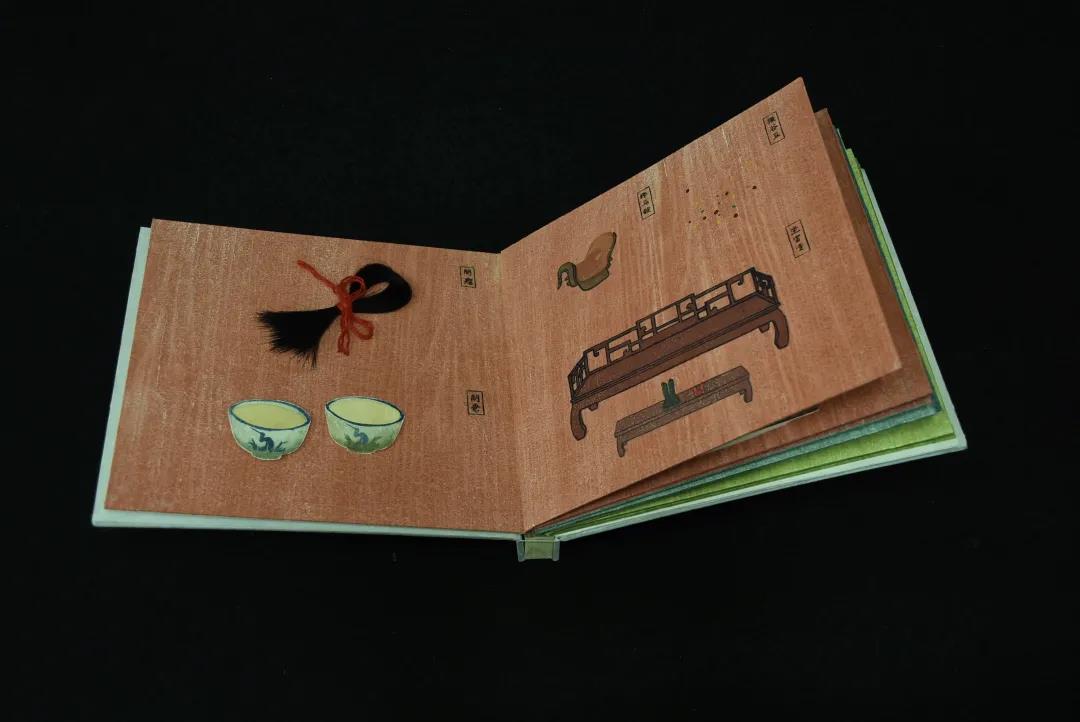 书本以古书形式制作,以绢布封面,棉轴线绷书,自右向左翻阅。书中内页背景用水印版画形式绘制,再用古法浆糊绷至纸板上,书中文字以墨上板水印至纸,图案以水印至生宣纸上,晾干,蒸纸固色后,用浆糊粘至卡纸上,压一日后,沿边剪下,粘至纸板,一些小场景与现代立体书小机关相结合,呈现立体效果。