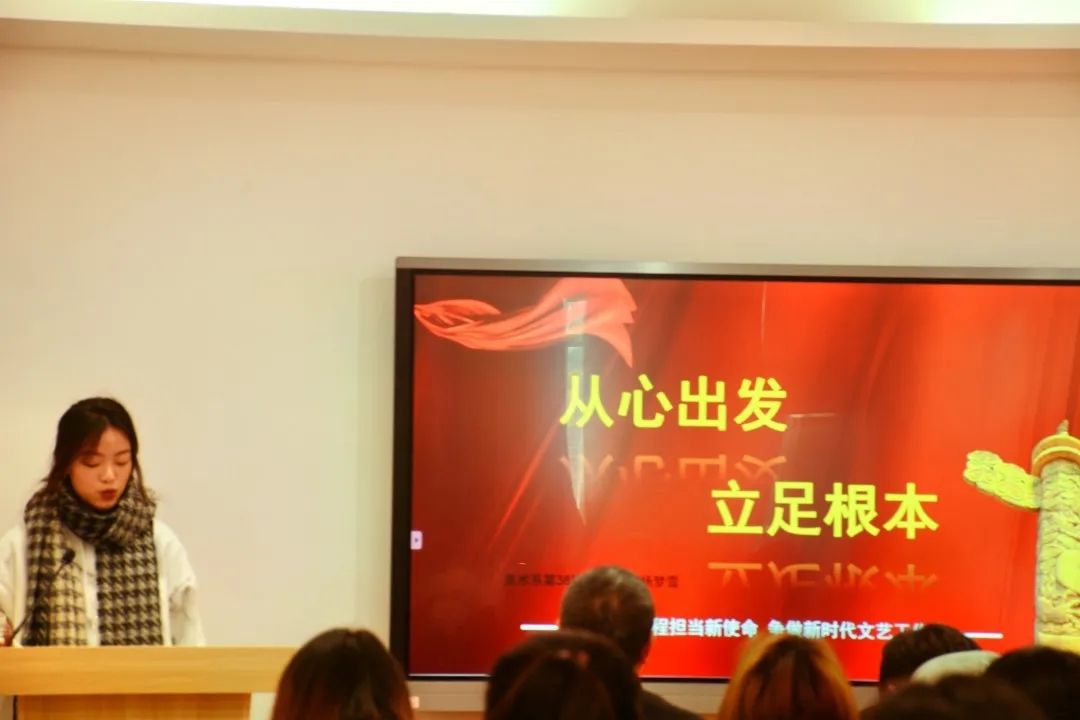 12月17日,美术系学生党支部开展“奋进新征程担当新使命 争做新时代文艺工作者”第二届主题微党课比赛。此前,来自第38期党校学员的10名同学,经过系部初赛选拔后,共有5名同学脱颖而出参加本次微党课决赛。美术系组织员章彪、学生党支部书记龚林峰、团总支副书记朱丹丹出席并担任比赛评委。全体学生党员、入党积极分子代表、青年理论学习小组成员代表等现场观摩学习。