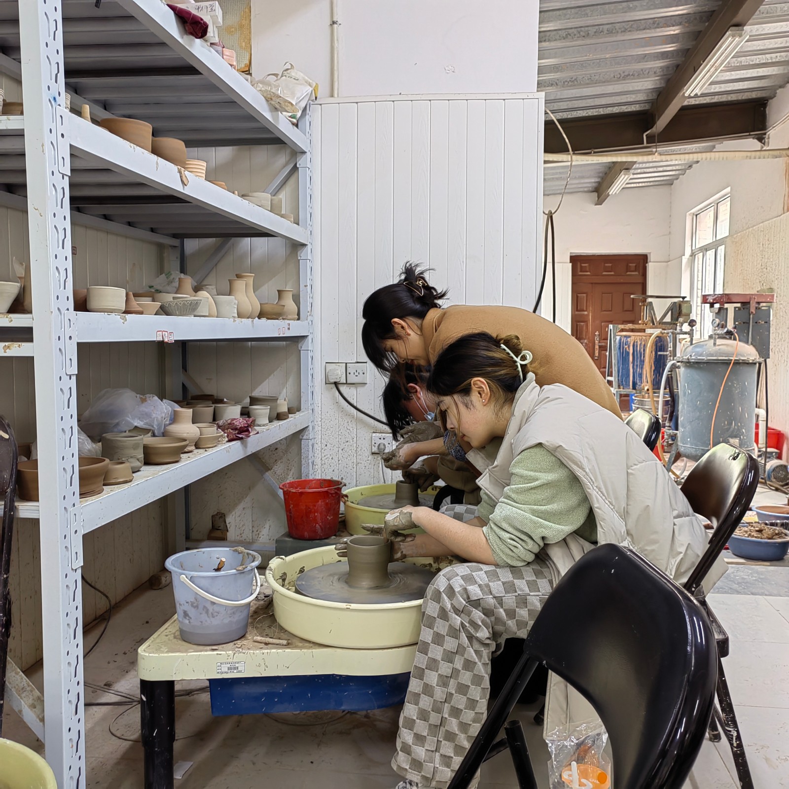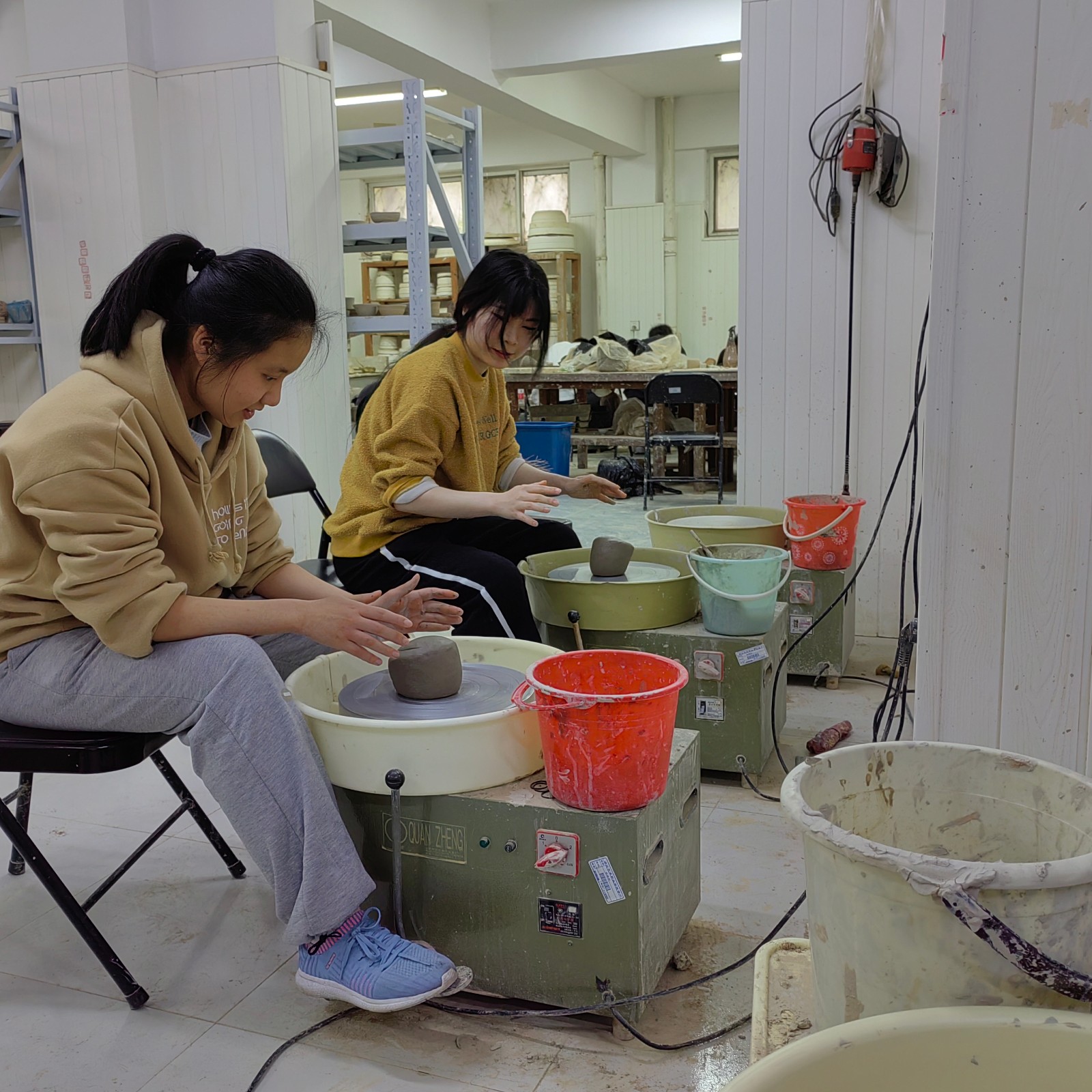 本次泥塑形象课主要分为“拉坯”与“捏塑”两部分。同学们手工艺学院学生的指导完成了自己的作品,努力在“拉胚”与“捏塑”的过程中寻找与音乐作品节奏、力度、中心的融通。同学们表示,泥塑是一种无声的立体音乐,通过这次泥塑基本知识的学习,豁然开朗,更加清醒的认识到如何在唱腔设计课中勤思考,宽眼界,多融合,如何发挥唱腔设计课的真实作用,将会持续努力,争取早日成为一名合格的越剧音乐伴奏人才。