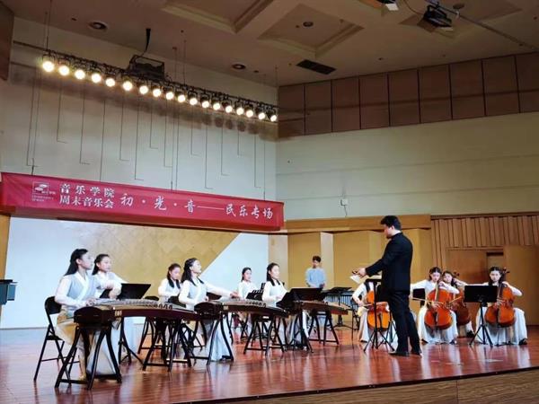 民族室内乐《花朝月夕》由19民乐戏音一贯班学生集体演奏,作品采用了广东音乐“汉宫秋月”的音乐素材,以细腻柔美的音乐风格,唤起人们对“花晨月夜,良辰美景”的遐思与憧憬。