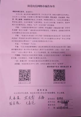 同学们签署《防范电信网络诈骗告知书》,并完成国家反诈APP和微信小程序“金钟罩”的安装,通过学习软件中的知识,提高防骗能力,减少不必要的财产损失。