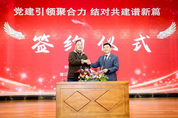 为深入学习宣传贯彻党的二十大精神,弘扬优秀传统文化,发挥党建引领作用,共同构建“基础知识、核心素养、专项特长”三位一体教学模式,完善大中小学相衔接的美育课程体系,11月27日晚,戏曲学院党总支赴杭州锦绣育才教育集团公办育才大城北中学,开展党建结对共建活动。戏曲学院党总支书记、副院长谢青,副院长周伟君,专职副书记谢志勇,杭州锦绣育才教育集团书记郁龙旺出席签约仪式,双方党员教师共同参加。谢青与郁龙旺共同签订了协议书,周伟君为校外实践基地揭牌。