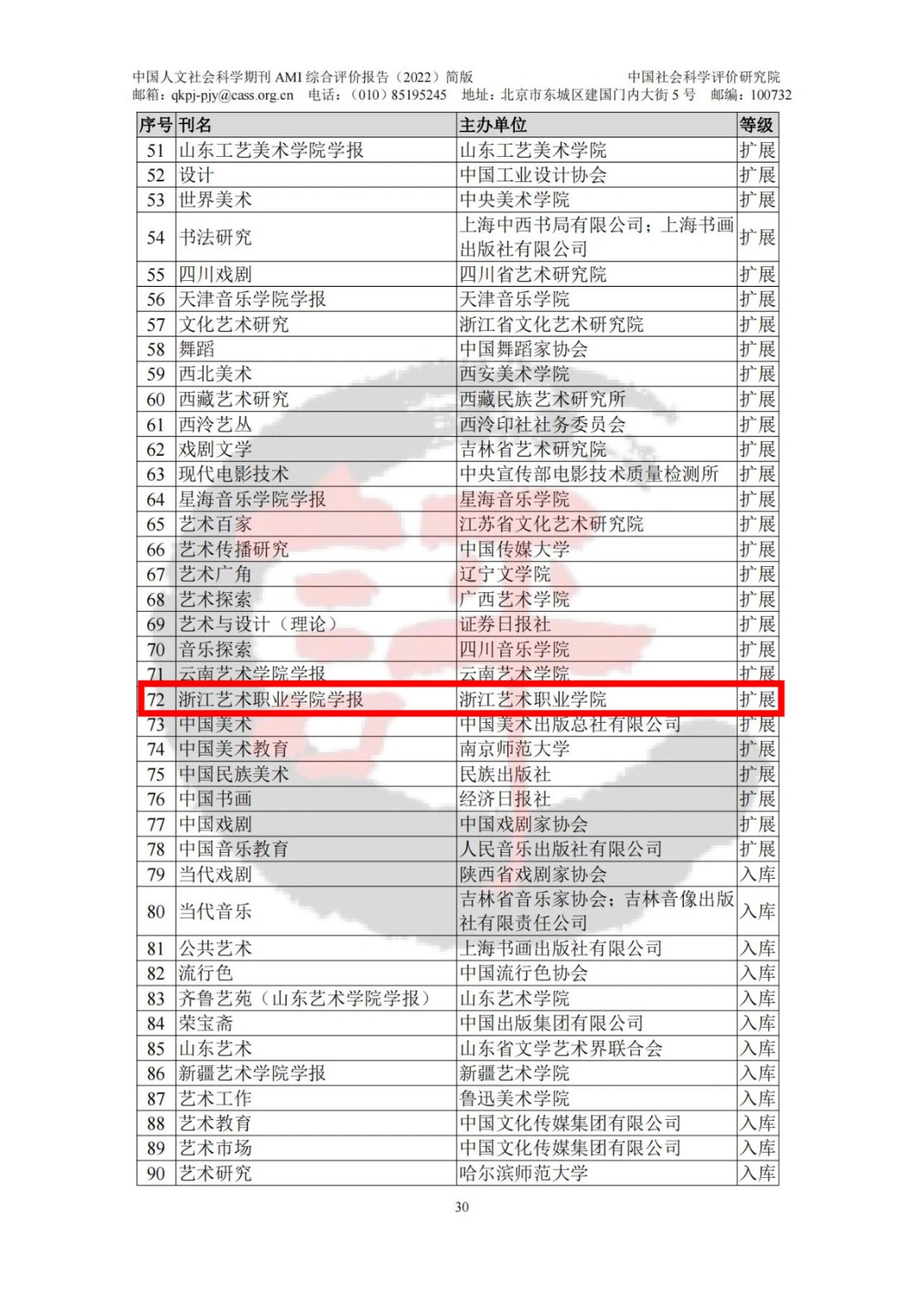 日前,中国社会科学评价研究院召开“第十届全国人文社会科学评价高峰论坛暨期刊评价报告发布会”,就人文社会科学期刊高质量建设发展进行研讨交流,同时发布《中国人文社会科学期刊AMI综合评价报告(2022)》和《中国人文社会科学学术集刊AMI综合评价报告(2022)》,我校学报入选艺术学扩展版。