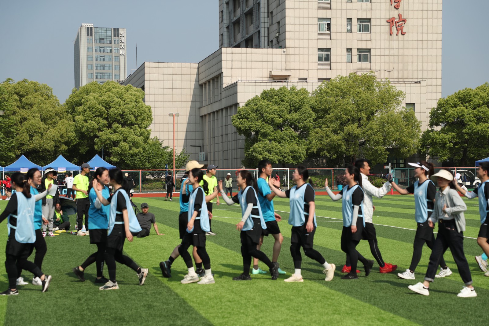 青春迎亚运,聚力向未来。场上,队员们奋勇拼搏;场外,拉拉队呐喊助威。大家凝成一股绳,充分展现了学校辅导员队伍奋勇争先、敢闯敢拼的团队精神和健康阳光的蓬勃朝气,赢得了参赛高校阵阵掌声。