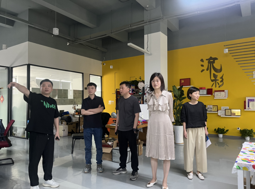 何佳玮一行人在闻琪的陪同下参观了杭州流彩动画有限公司。