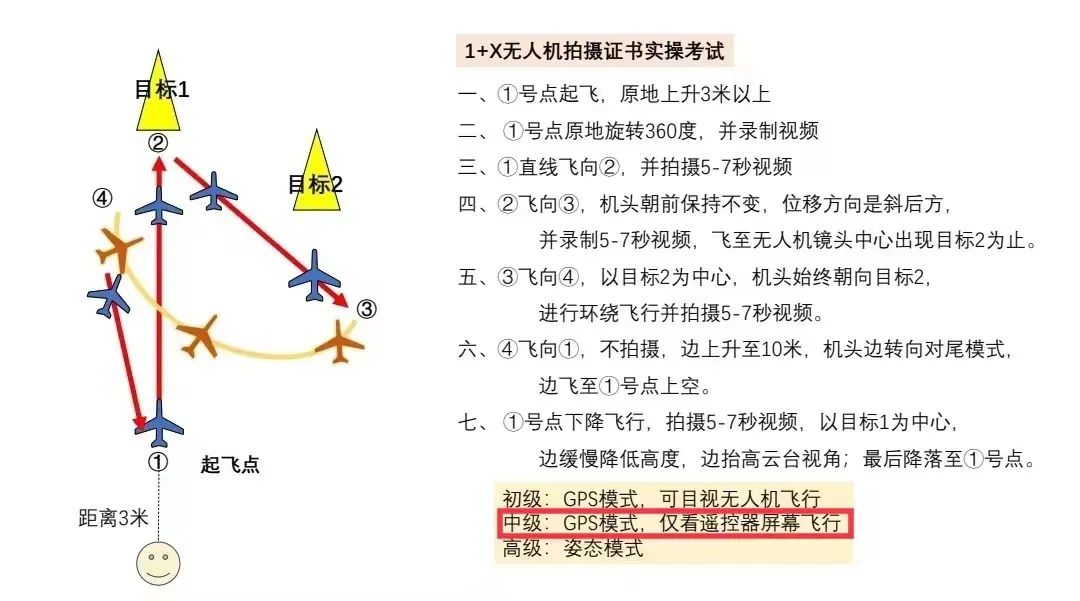 1+X无人机拍摄职业技能(中级)考试旨在引导学习者掌握专业的飞行技能和拍摄技巧、与时俱进的拍摄理念和行业认知,让学习者能够将无人机的飞行技术与摄影摄像对美的感悟结合起来,创作出“技美合一,寓意深远”的无人机拍摄作品。