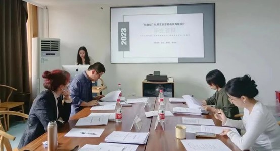 5月17日上午,设计学院组织开展了2021级视觉传达设计(专升本)班毕业论文(设计)答辩会。绍兴文理学院艺术学院设计系系主任黄章敏、视觉传达设计专业副主任夏飞英、专业教师邹元元,手工艺学院副院长叶峰泉,设计学院副院长何佳玮,广告艺术设计专业部分教师参与了答辩会。