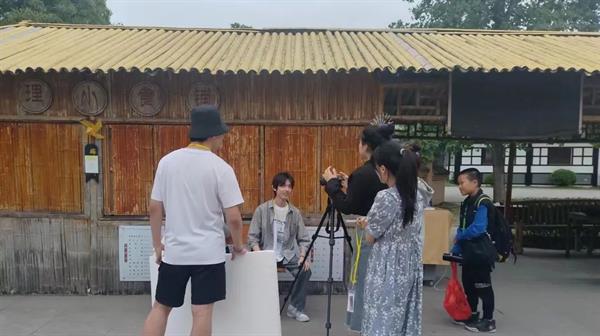 4月28日中午,同学们抵达象山影视城后便立即进行堪景,并分成三个小组进行剧本围读。次日,大家前往各组选定的拍摄场地,亲自布置场地、架设机器等。五一期间,象山影视城人流量大、天气多变,但同学们都克服了困难,时刻保持影视作品创作的状态,顺利完成4部短片和1部纪录片的创作。
