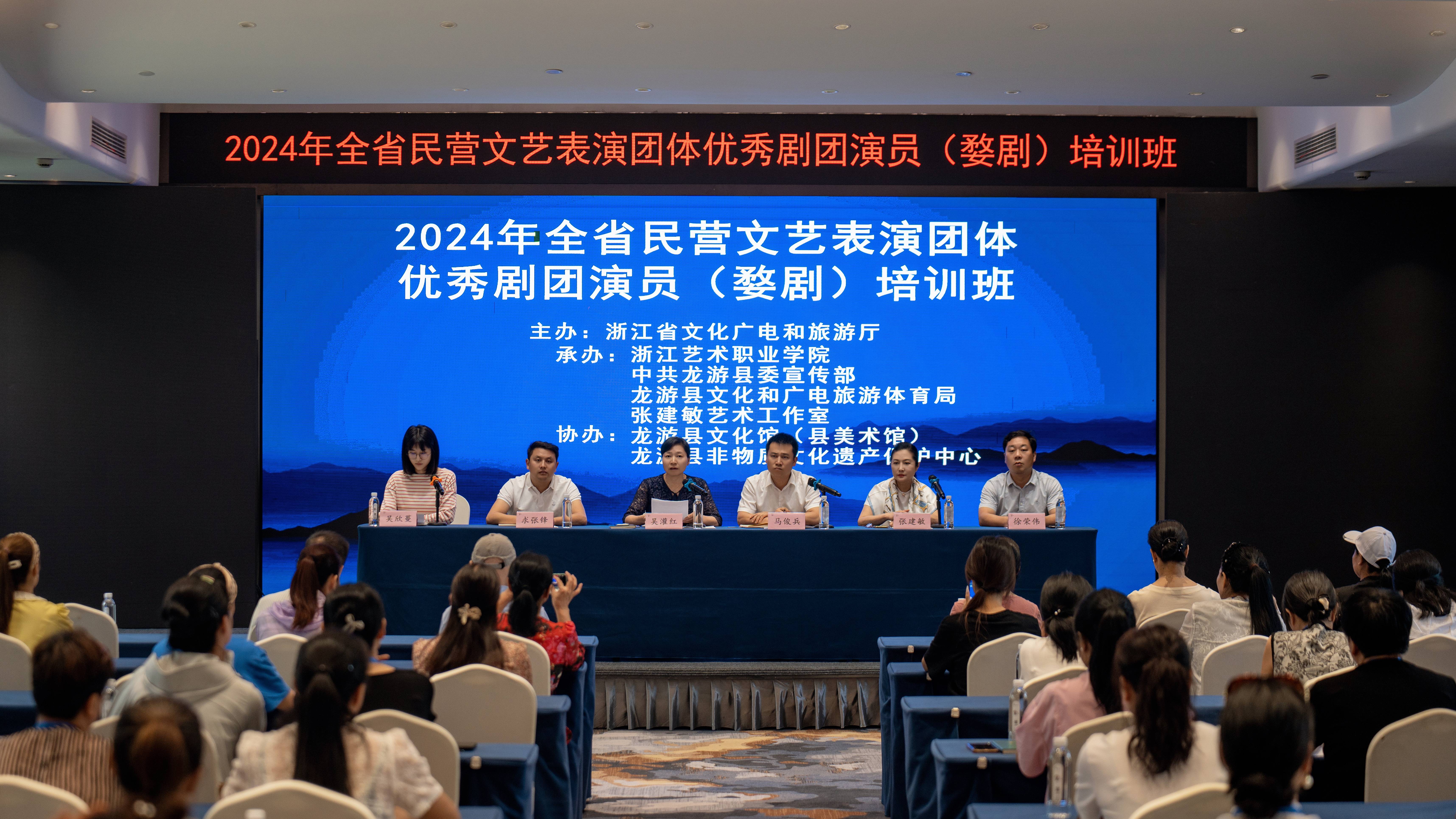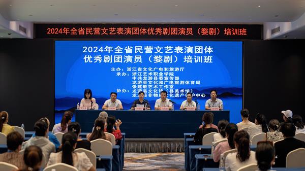 7月19日,由浙江省文化广电和旅游厅主办,浙江艺术职业学院、中共龙游县委宣传部、龙游县文化和广电旅游体育局和张建敏艺术工作室共同承办的2024年全省民营文艺表演团体优秀剧团演员(婺剧)培训班在龙游开班,来自全省各地民营文艺表演团体的60多名婺剧演员参加培训。我校继续教育学院院长吴灌红,国家级婺剧传承人、金华艺术学校原副校长、梅花奖获得者张建敏,龙游县委常委、宣传部部长马俊兵,龙游县委宣传部部务会议成员、精神文明建设指导中心主任求张锋,龙游县文广旅体局党委委员徐荣伟等出席开班仪式。