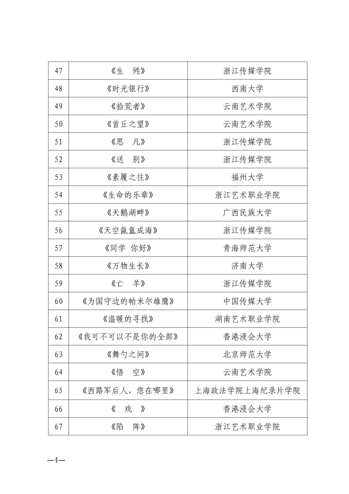 由中国艺术职业教育学会主办的第四届浙艺金鹄电影节暨原创影像大赛于2021年11月20日—11月27日在杭州举行。本次大赛总共收到参赛作品1129件,其中短片单元395件、剧本单元166件、短视频单元219件、摄影单元349件。经专家评审组初评后,共有303件作品入围,入围率27%。现名单公示完成,最终入围名单如下,特此公告。