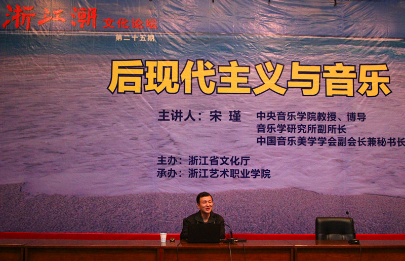 4月25日下午,由浙江省文化厅主办,浙江艺术职业学院承办的第二十五期“浙江潮”文化论坛在图书信息中心举行。学院邀请中央音乐学院教授、博士生导师宋瑾教授为全院师生作题为《后现代主义与音乐》的精彩演讲。