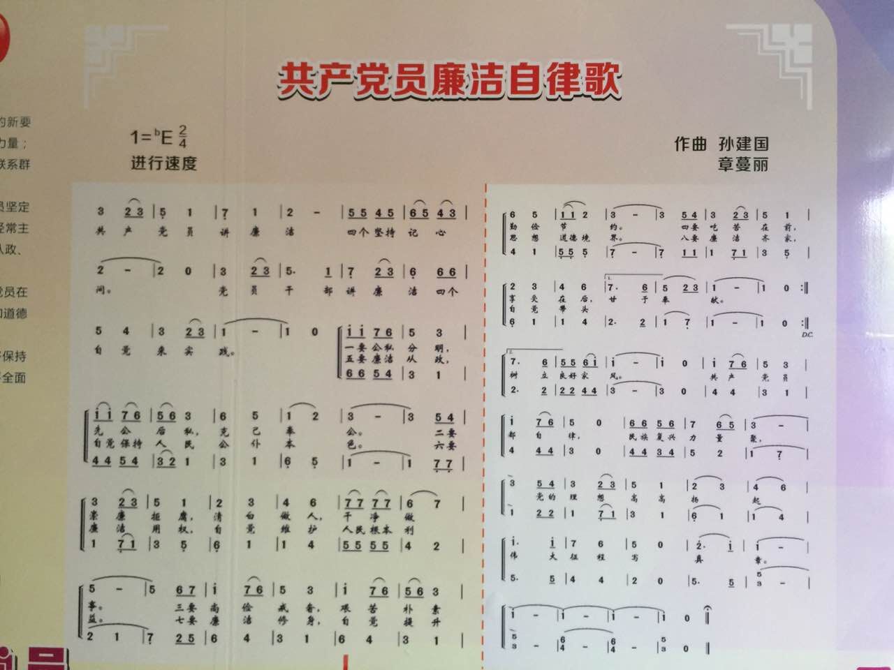 近日,从浙江省直机关工委传来喜讯,由浙江艺术职业学院音乐系理论作曲教研室教授孙建国、系党总支副书记章蔓丽作曲的《共产党员廉洁自律歌》入选“两学一做”专题教育活动传唱歌曲。