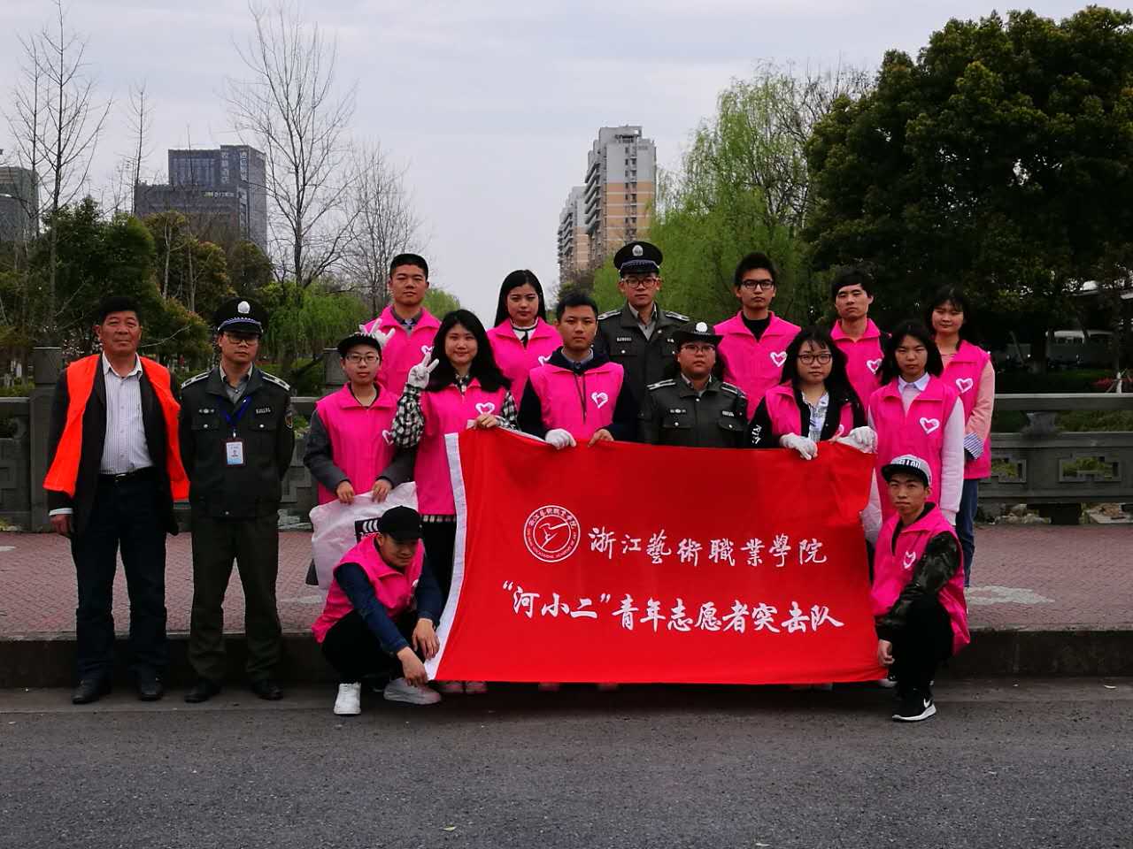 “我以学子之名,自觉响应剿灭劣V类水集结号令,积极投身五水共治,清三河、护三水,以青春意志,激浊扬清剿灭劣V类水,以学子之风,奋楫扬帆共建美丽浙江。”3月28日,浙江艺术职业学院“河小二来了”——剿灭劣V类水专项实践活动第一站正式启动。在此活动中,浙艺“河小二”青年突击队成功与滨江区城管局结对,在高教河“河长”的指导下做了一次河长助理,体验了一次巡河,宣传了一次河道环保知识。