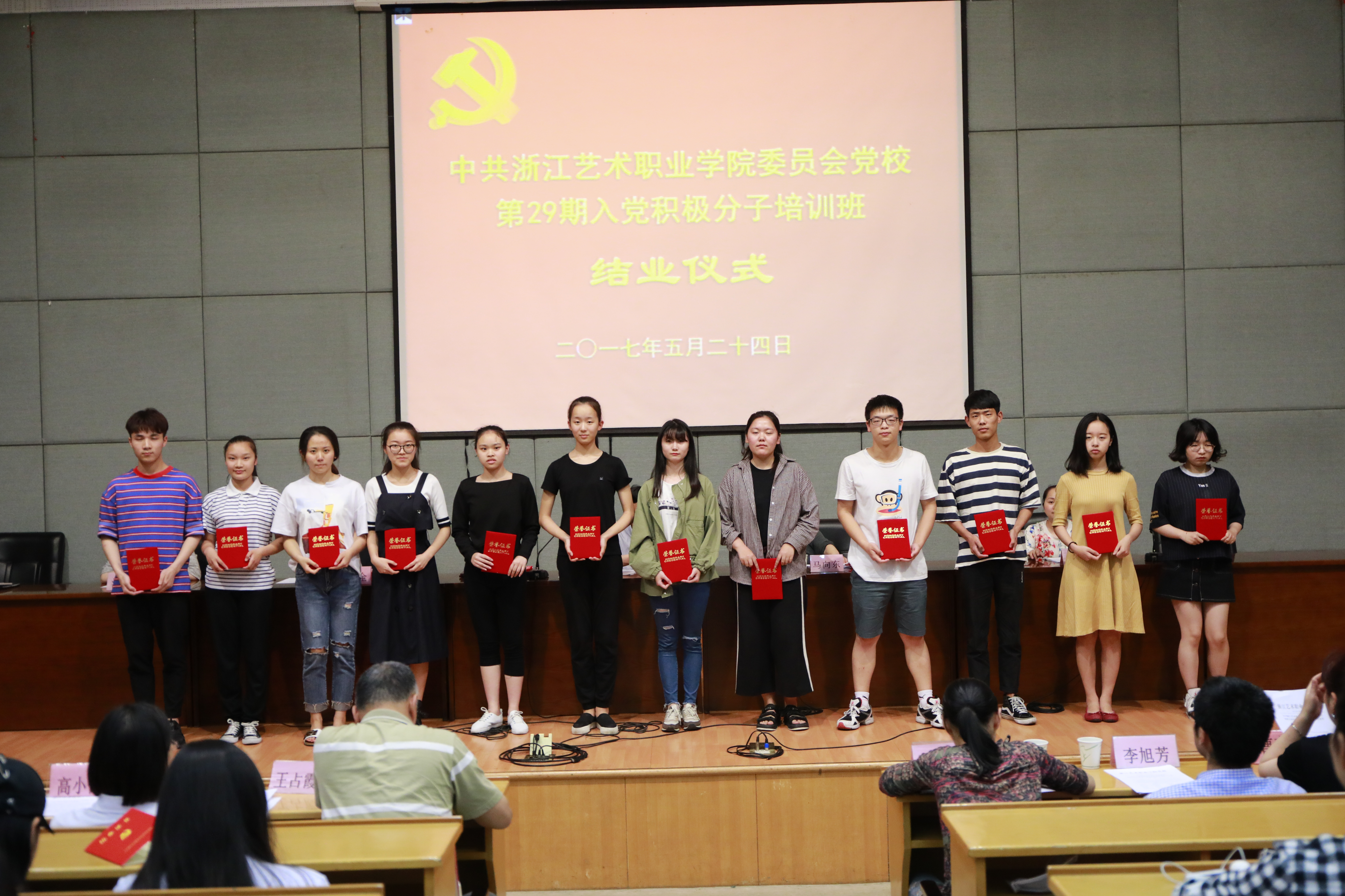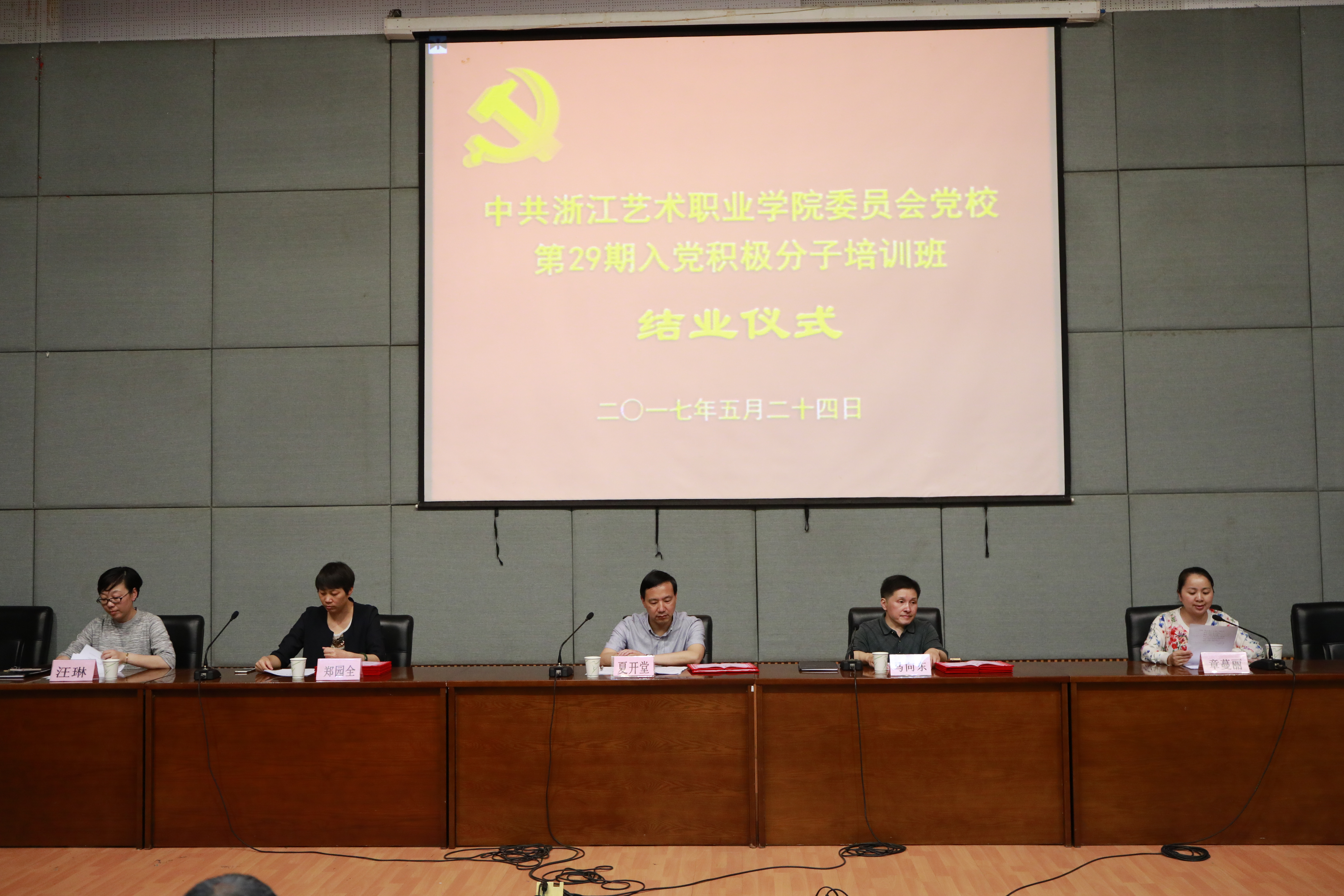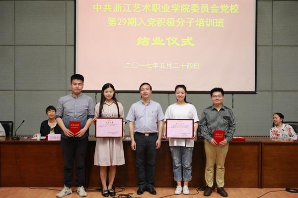 5月24日晚,浙江艺术职业学院党校第29期培训班结业仪式在图信中心报告厅举行。党委委员、副院长夏开堂,党校校务委员、党委宣传教育处处长马向东,基础教学部副主任(主持工作)郑园全、党校校务委员、音乐系党总支副书记章蔓丽,组织处副处长汪琳,各系党总支副书记、党校教研室教师、班主任和本期培训班学员等出席仪式。马向东主持结业仪式。