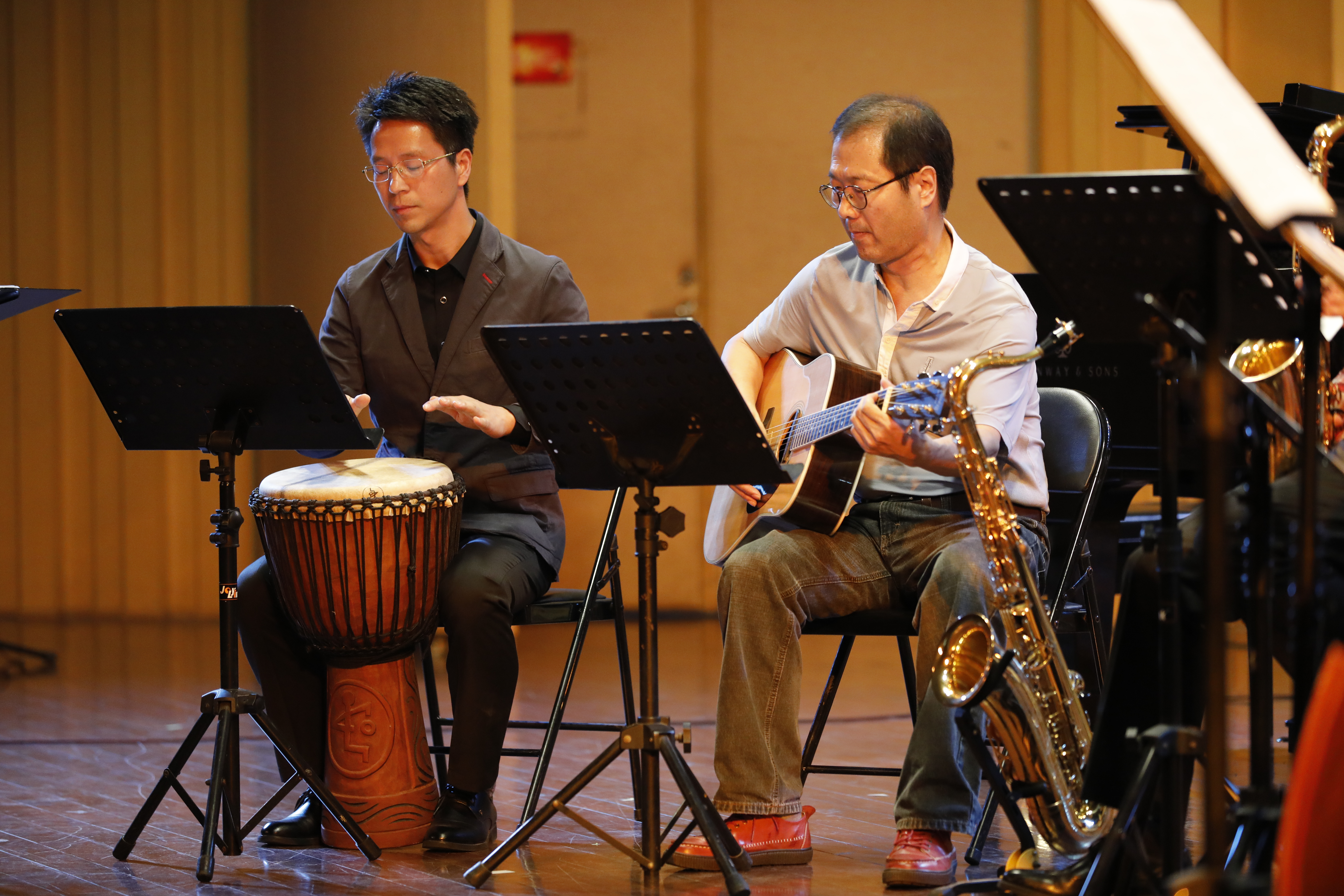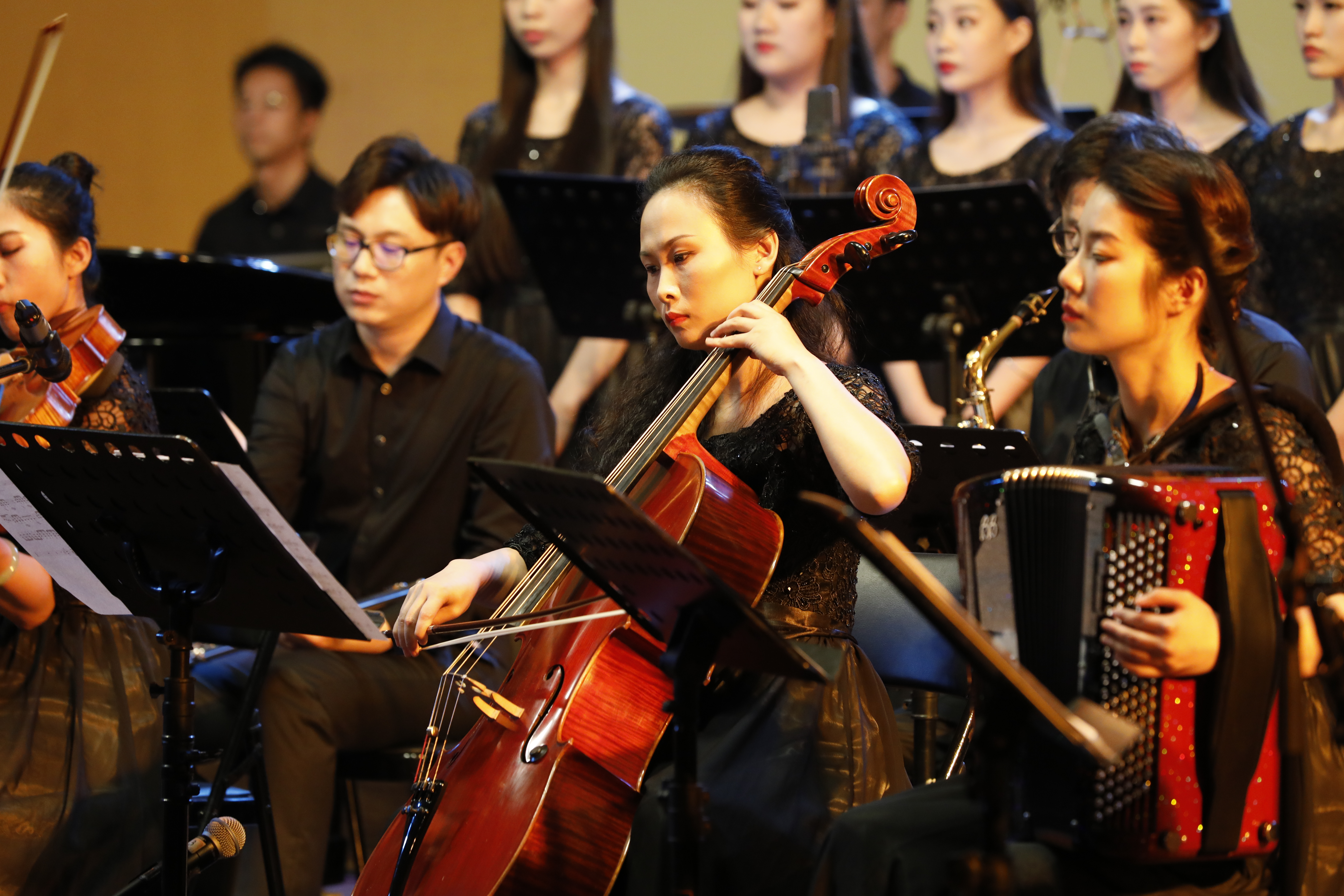 浙江艺术职业学院音乐系主任郭义江教授说,我们的老师都很拼,两场音乐会是我院音乐系师生历经数月,利用节假日和平时晚上休息时间排练出来的。端午三天假期,浙艺师生依然在昼夜排练,直至凌晨。老师们在平时教学中,也能沉下心,潜心专业建设,音乐传承。我们的民族音乐曾经举步维艰,剧院音乐厅演出的不是钢琴演奏会就是西洋歌剧,很少有人去挖掘、传承、弘扬和继承民族传统音乐。浙江艺术职业学院在对待传统音乐上一直在努力,在作为。比如我们本土音乐的前辈赵松庭老师,沈凤泉老师等等,一代代浙艺人推动着民乐的发展,推动着浙江艺术教育的民乐建设,为民族乐器演奏的传承发展砥砺前行。