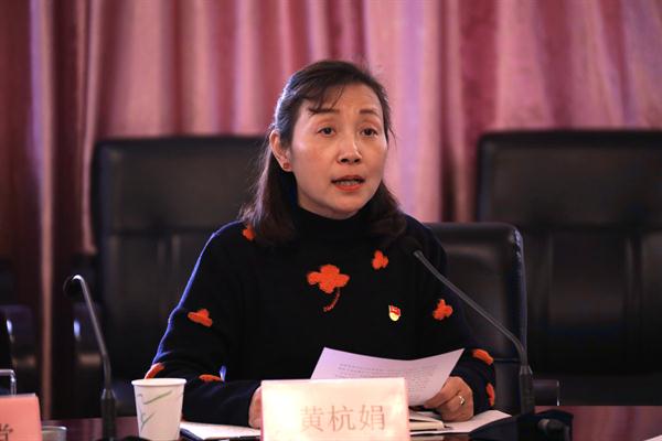 在汇报会上,黄杭娟代表学校党委向检查组汇报了我校党组织机构设置、党务干部配备和党建工作开展情况,包括深入学习宣传贯彻党的十九大精神、履行抓基层党建工作责任、推进“两学一做”学习教育常态化制度化、贯彻党建重要会议和重要文件精神和服务保障中心任务成效等。黄杭娟从“志愿+服务”推动文化传播,“志愿+创作”推动文化创新,“志愿+培训”推动文化服务三个方面详细介绍了我校基层党建工作的主要亮点和做法,并指出学校党建工作中存在的问题,提出下一步加强和改进学校党建工作的主要对策。