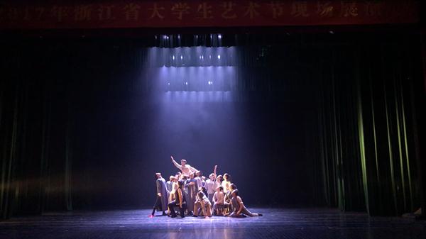 由舞蹈系青年教师李毅源、杨博文编导的群舞《红船》此次获得舞蹈类金奖第一名,也是实至名归。作为献礼党的十九大的诚心之作,以嘉兴南湖红船为故事背景、意象性的动作语言来表达对未来新社会憧憬的《红船》,已然成为近年来我省舞蹈界涌现出的一部经典佳作,征服了评委和观众,代表了浙江省舞蹈艺术近几年发展的最高水平。之前该作品已连续两年荣获2016浙江省大学生艺术节、2017浙江省大学生艺术节舞蹈类专业组金奖,不久前又刚荣获2017首届“浙江风格 江南舞韵”作品展演“十佳作品(综合最高奖)”奖,这次再收获一枚音舞节的金质奖章,可谓锦上添花、众望所归。