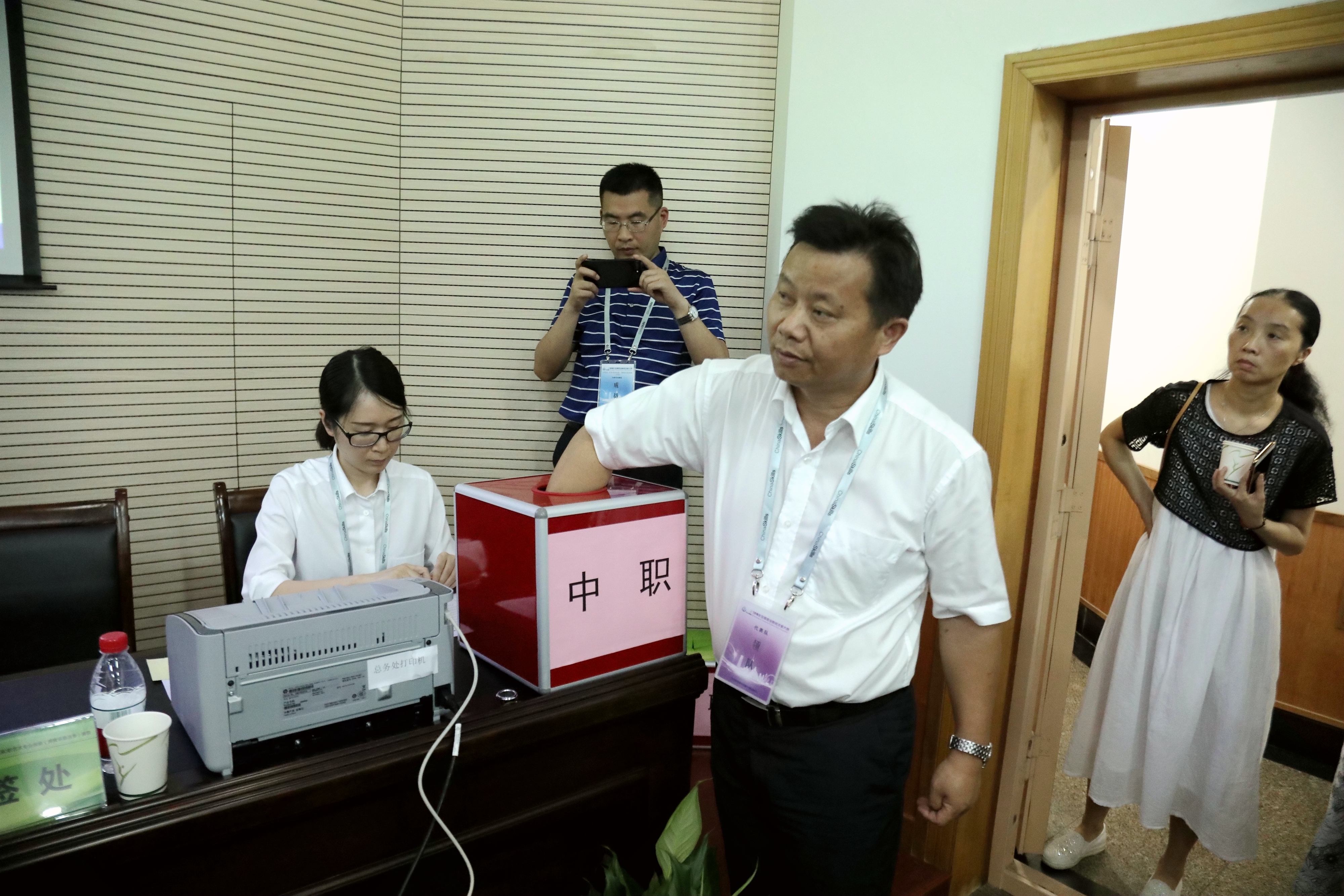 会议最后,全国各参赛队领队依次上台为本队选手抽签,决定比赛出场顺序。抽签全程有录像监督,确保大赛公正、公平、公开进行。具体参赛顺序请关注浙江艺术职业学院官微,点击“技能大赛”菜单栏可查询。