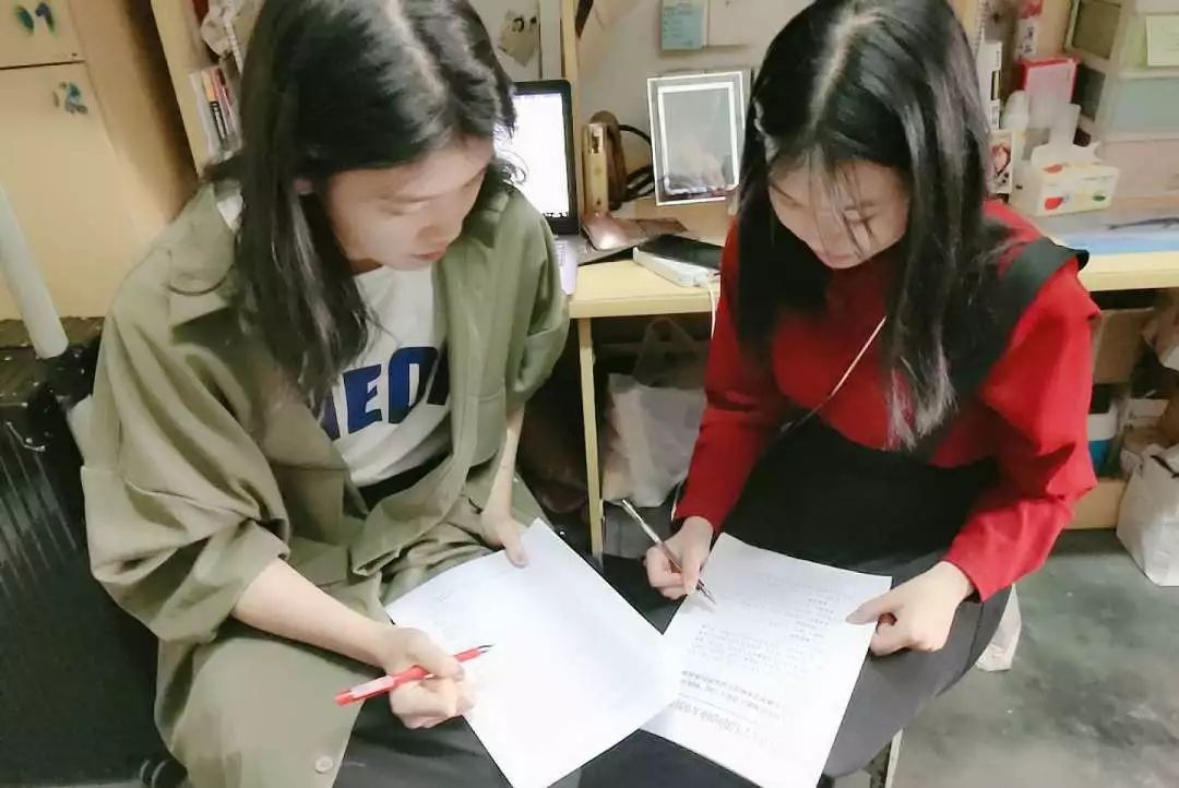 倪惠惠、范冰冰修改论文中