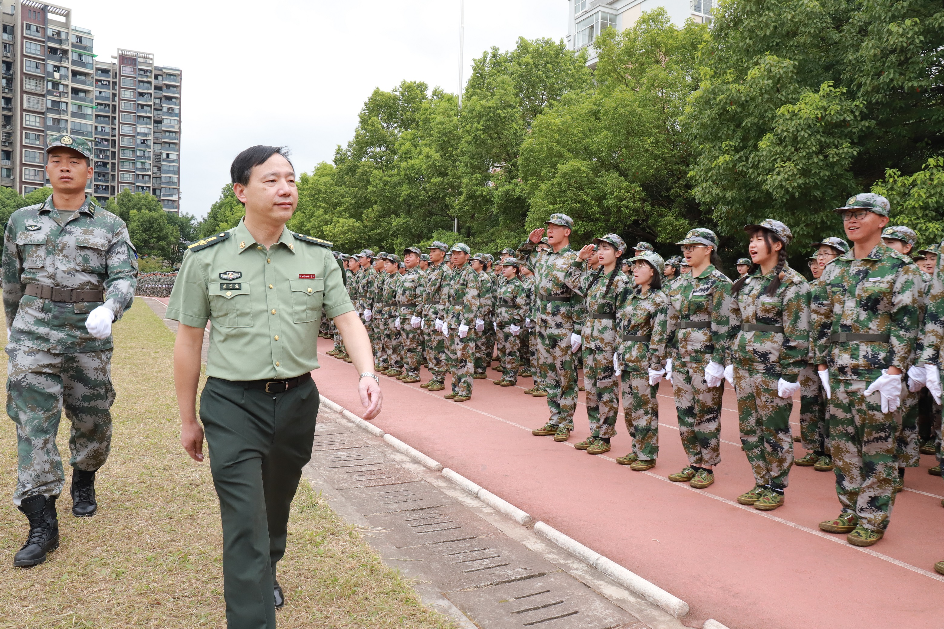 夏开堂宣读军训先进个人和先进集体名单,对新生进行了检阅。