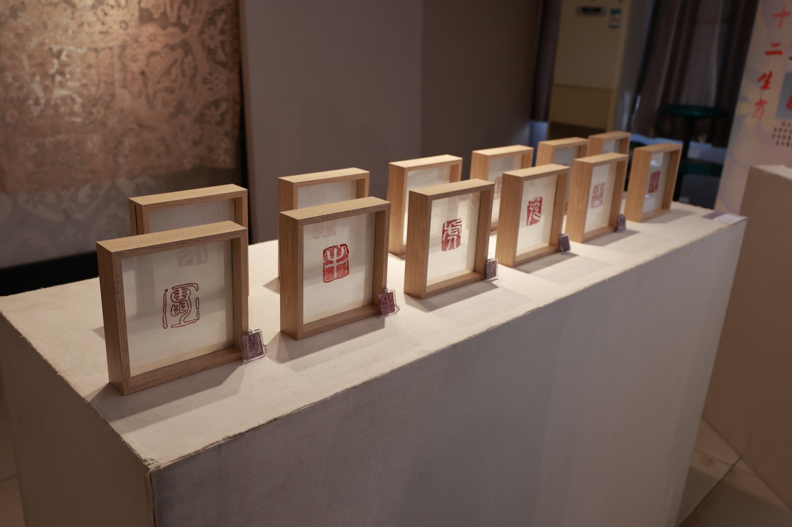 十二生肖用白色绡纱为底,搭配红色绣线,运用了传统手工刺绣的各种针法,展现出现代与传统相碰撞的艺术风格,以精致小摆件的形式呈现在观众面前。