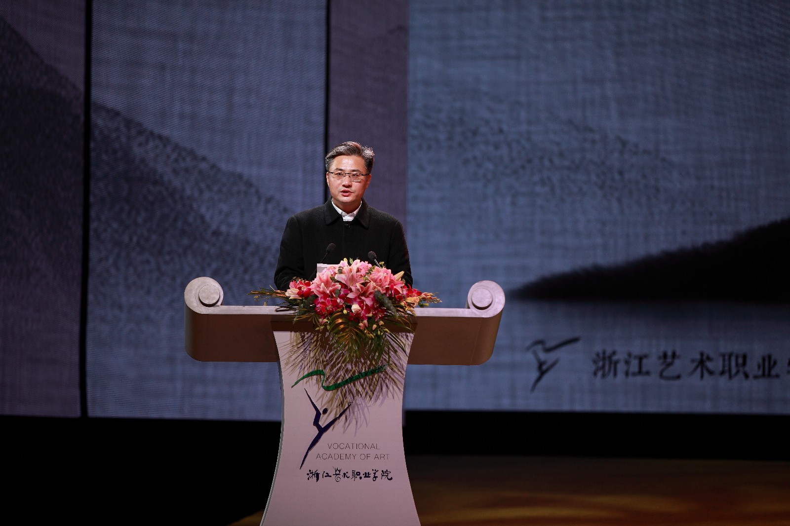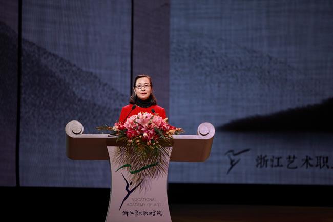 浙艺党委书记薛亮致辞。他说,浙江艺术职业学院作为列入国家“双高”建设计划的艺术类高职院校,承担着戏曲表演高水平专业群的建设任务。为推动戏曲表演高水平专业群建设,经省编办批准同意,成立了新的戏曲学院。“路漫漫其修远兮,吾将上下而求索。”我们将抓住戏曲艺术保护振兴发展的大好机遇和国家职业教育提质培优扩容的改革东风,扎实推进“双高”建设,做优做强戏曲学院,创新戏曲教学体系,大力培养戏曲新人,为进一步繁荣我省艺术教育事业,助力“重要窗口”和文化浙江、诗画浙江建设作出新的更大贡献!