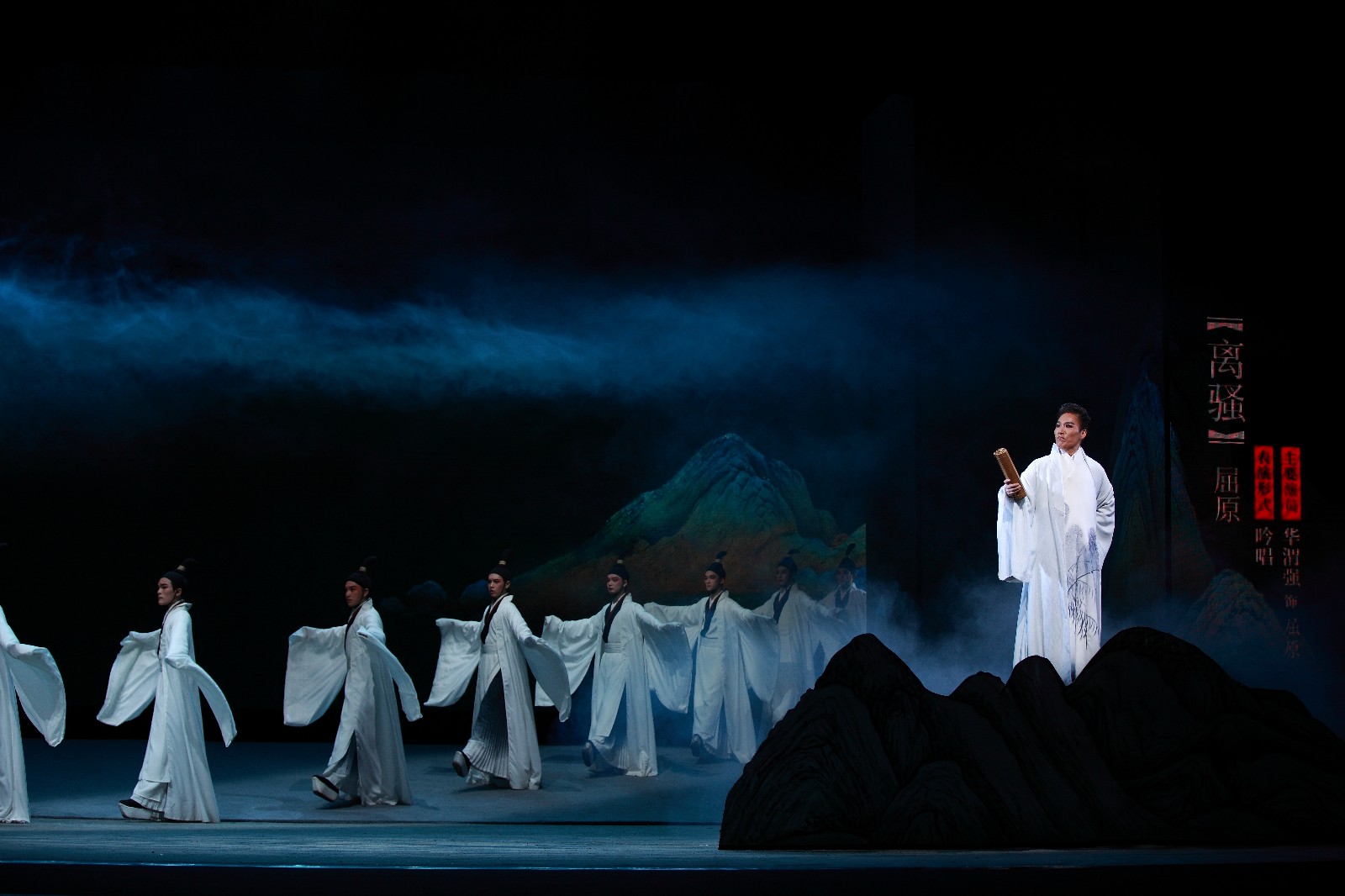 当晚演出《诗路行吟》诗画浙江戏曲雅集,由浙江省文化和旅游厅出品,浙江艺术职业学院联手浙江戏曲产教联盟主办,分《吾心求索》《诗气东来》《戏从民生》《天地共鸣》《与君山水》五个篇章。