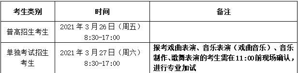 (四)2021年3月26日,普高招生考生资格审核及现场确认;3月27日,单独考试招生考生资格审核及现场确认;