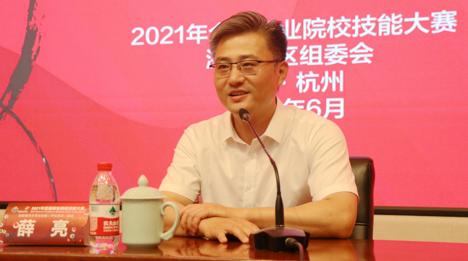 薛亮对参加“国赛”的来宾表示欢迎。他说,承办本次全国职业院校技能大赛高职组艺术专业技能(声乐表演)赛项,是大赛主办方对浙江艺术职业学院的信任,也让浙艺有机会和来自全国各地的兄弟院校同台竞技,学习交流。浙艺必将当好东道主,为本次大赛圆满举行创造必要的比赛条件提供最好的后勤保障。浙艺也将积极响应大赛主办方号召,派出最优异的选手参加比赛,让浙艺的同学在大赛中展示风采,增长技艺。