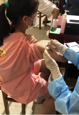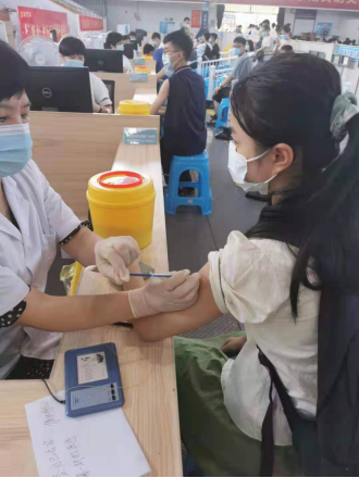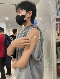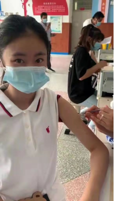 我们班内的成年同学在学校的组织下已全面接种新冠疫苗。我特别希望自己也可以接种疫苗,在得知了15-17岁未成年人已开放疫苗接种后,今年暑假,我第一时间在温州当地社区卫生服务中心自行接种了新冠疫苗。接种现场,我被所有的志愿者、医务人员深深感动,他们认真询问了我的身体情况,分流细化到每一步,告诉我疫苗接种后的禁忌,并要求我留观半小时,接种完疫苗后我身体没有感觉到不适,在此感谢所有为此付出的医护人员!疫苗接种完后我感受到作为一个中国人的骄傲和自豪!作为一名新大一学生,接种完疫苗后我也会做好戴好口罩等防护措施,时刻牢记学校教给我们的防护措施,为抗击疫情献出一份微薄的力量。
