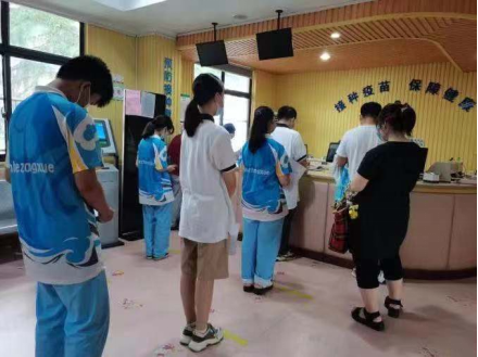 接种疫苗的人络绎不绝,排起了长长的队伍。队伍的上方,有棚子给我们遮阳,很贴心。在队伍外,每一段距离都有一个工作人员帮忙答疑解惑,为进入场馆提前做好查看健康情况和填写表格的准备。一层接一层的工序很多,但也从中体现出了国家和工作人员的负责,非常敬佩。