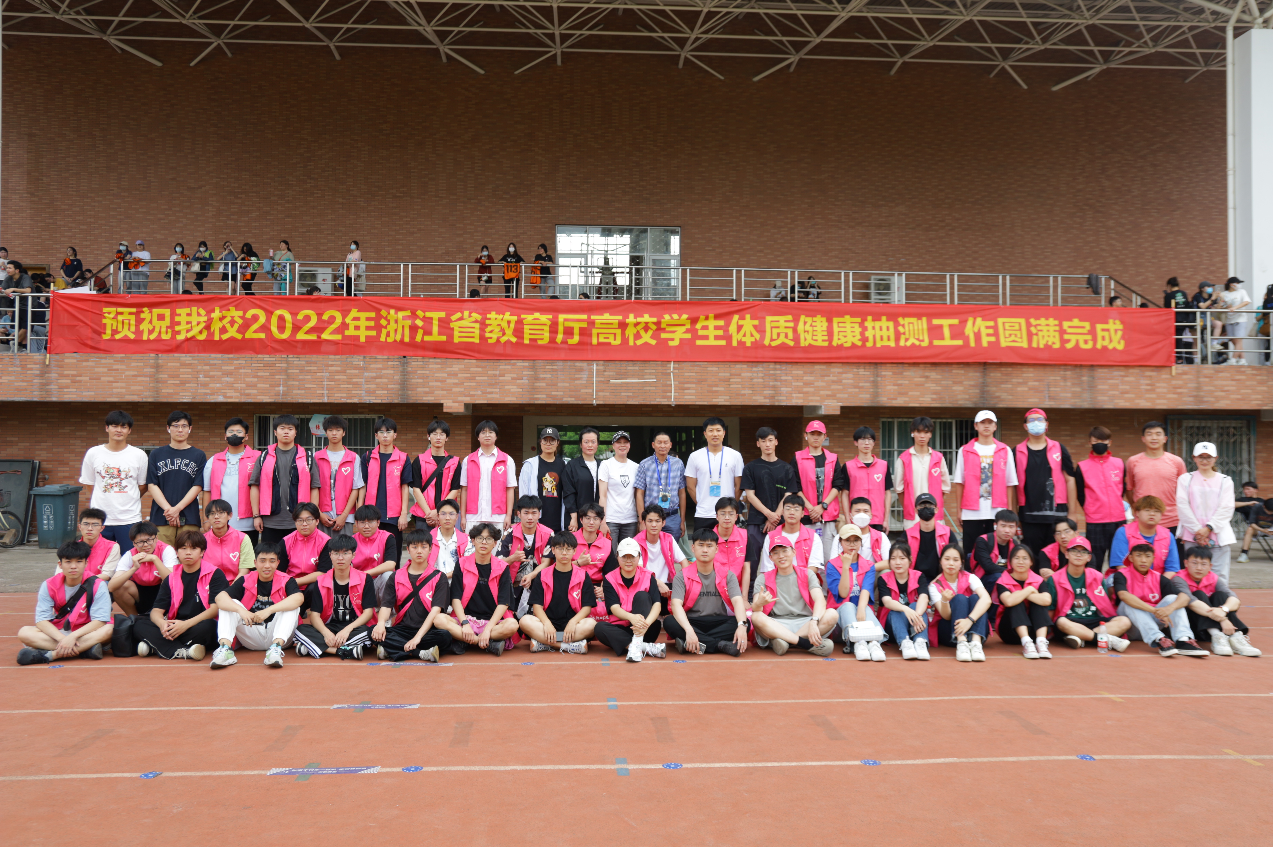 本次抽测工作的50名志愿者工作由我校音乐学院、设计学院学生承担,为保证服务和引导工作的清晰到位,还召开了志愿者工作培训会。抽测前日,体育教研室全体老师召集学生,为全力冲刺凝心聚力、统一思想、做足动员。