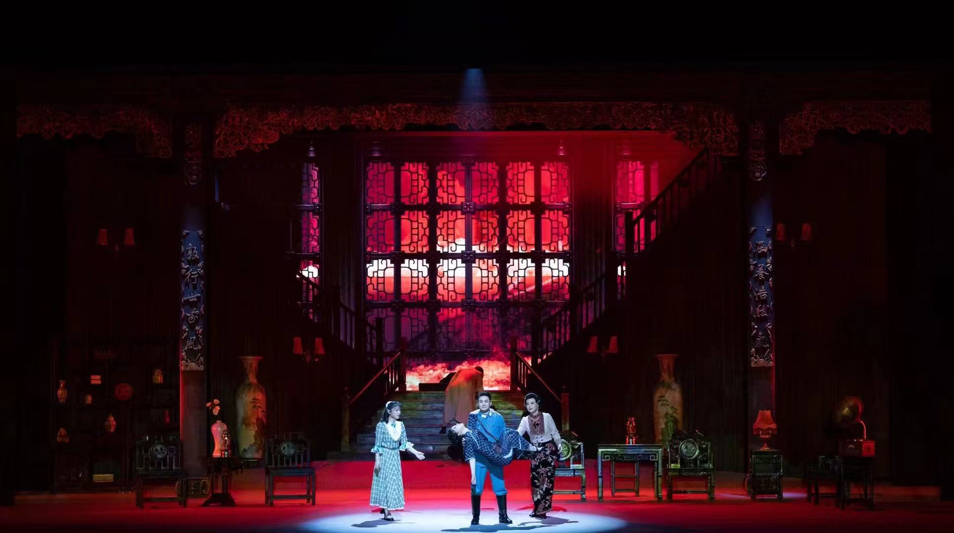 吴放介绍,在《舞衣裳》的演出设计中,他仅在舞台上设置了一个9米×9米的转台。这个转台紧扣剧情,既可化作花园亭台,也能变为大狱牢房,恰似一方戏台,巧妙暗喻“人生如戏,戏如人生”。该设计获业内高度评价:“以动态空间结构营造历史情境,用视觉隐喻手法更新传统样式”。此作品还曾于去年10月荣膺首届欧阳予倩戏剧奖最佳演出设计大奖。