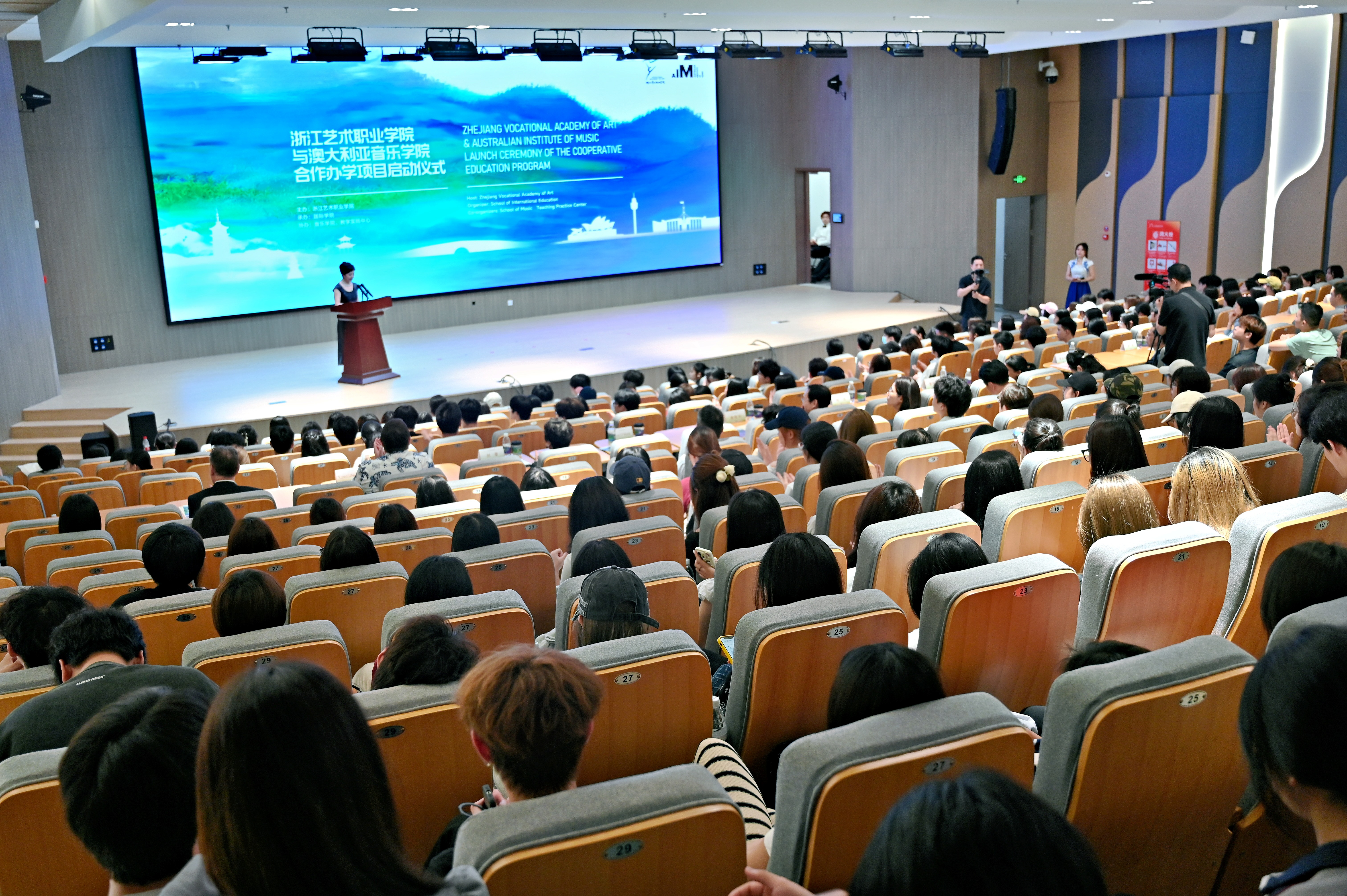 薛亮代表学校热烈欢迎澳大利亚音乐学院校长一行到访,衷心感谢上级主管部门领导莅临指导。他指出,作为浙江省首个音乐表演(声乐)中外合作办学项目,浙江艺术职业学院将依托70年办学积淀,为学子搭建多元学习平台,架设中澳文化交流桥梁。学校将以“高水平、高标准、高质量”推进项目落地,助力学生走向国际舞台,讲好中国故事,传播中华文化。