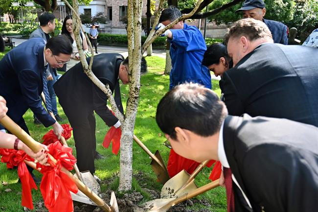 活动期间,“友谊树种植仪式”在我校艺池小广场举行。浙江艺术职业学院与澳大利亚音乐学院双方共同培土浇水,种下象征合作与友谊的桂花树。