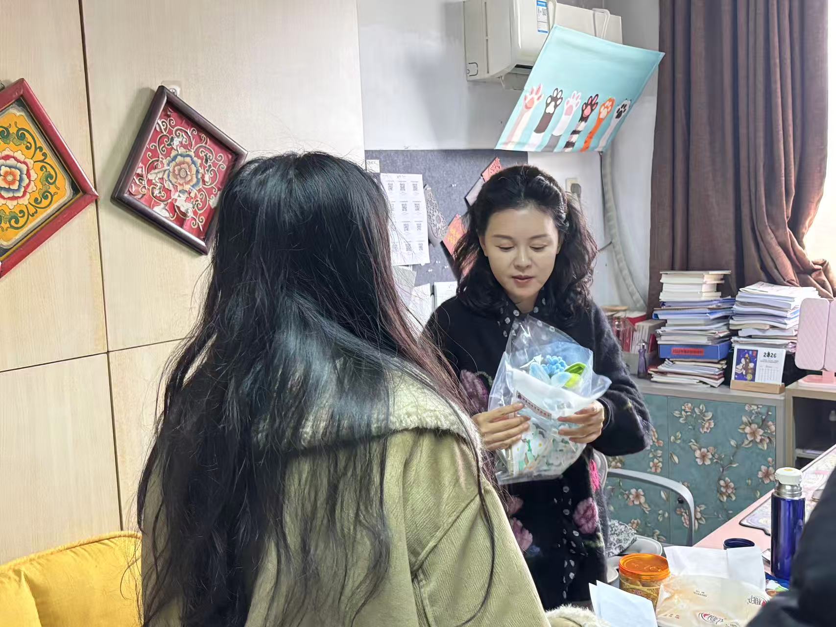 演艺与教育学院开展 “巧手献芳华・香暖妇女节” 主题活动,学院学子积极参与其中,分工制作香包、扭扭棒花束,上门为女教职工们送上手工礼物,送出真挚的节日祝福。