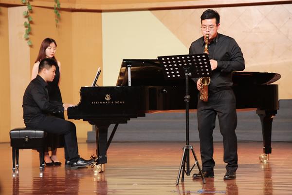 当晚的演出是由音乐系萨克斯风专业张新伟、周远星二位老师以及全体萨克斯风专业的同学们共同完成。他们其中有即将步入社会的毕业班同学,也有刚开始体验大学生活的新同学。可以说本场音乐会既是给毕业班同学大学生活画上一个完美的句号,也是给新同学第一个走上舞台锻炼自己的机会。