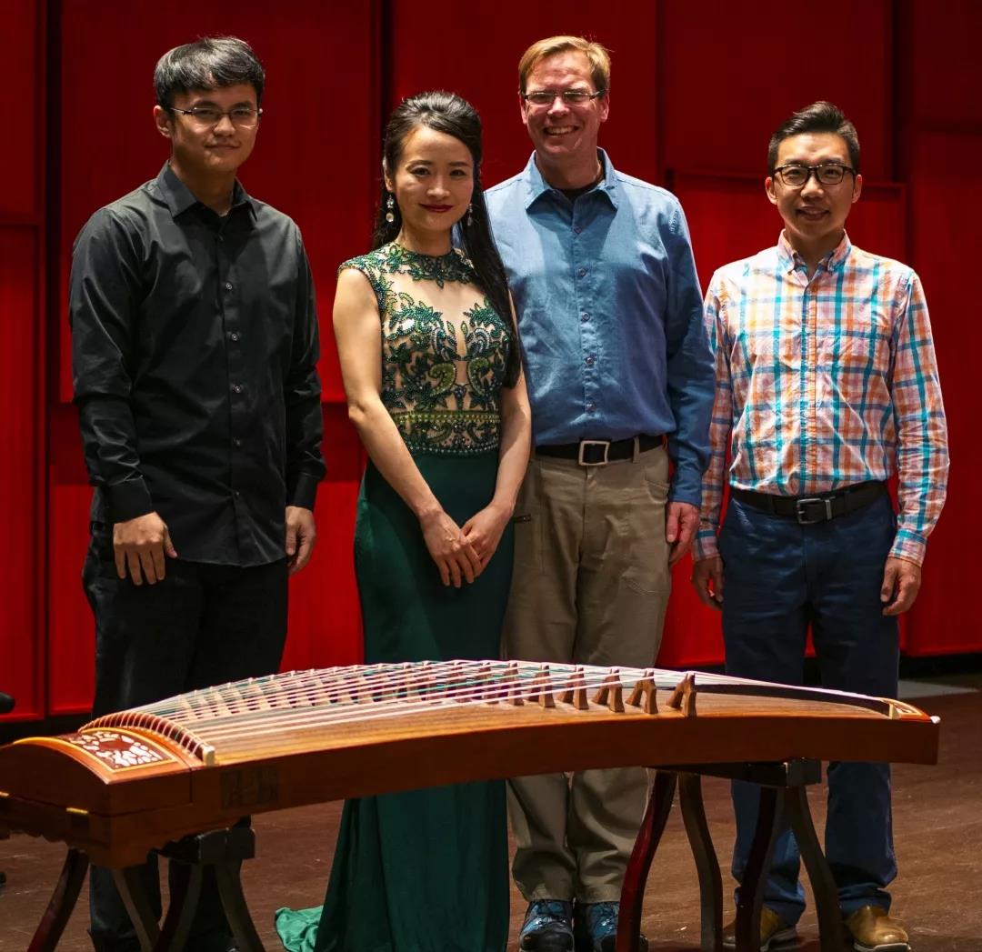 本次音乐会的成功举办要感谢爱荷华大学音乐学院Trevor Harvey教授的大力支持,他不仅在音乐会前期筹备环节做了大量工作,促成了音乐会的顺利举办,还提供了一台心爱的古筝供我使用。作为世界民族音乐方面的专家及古筝爱好者,他与我的结缘也源于古筝。音乐会后他向我表达了感谢,感谢我将美妙的中国音乐带到美国,并让他感受到了古筝的强大能量与无限魅力,这是前所未有的震撼体验,让他更加喜爱这件中国乐器。