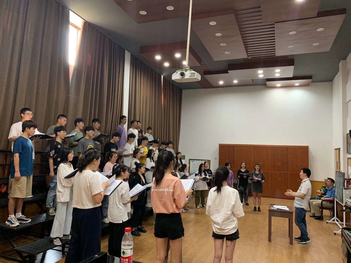 小课琴房,琴声、歌声,声声入耳。安静了两个月的琴房,迎来昔日师生,好不热闹。排练厅里,器乐合奏、人声合唱,交相辉映,延续着开学前大艺节备赛师生的排练热情和专业执着。