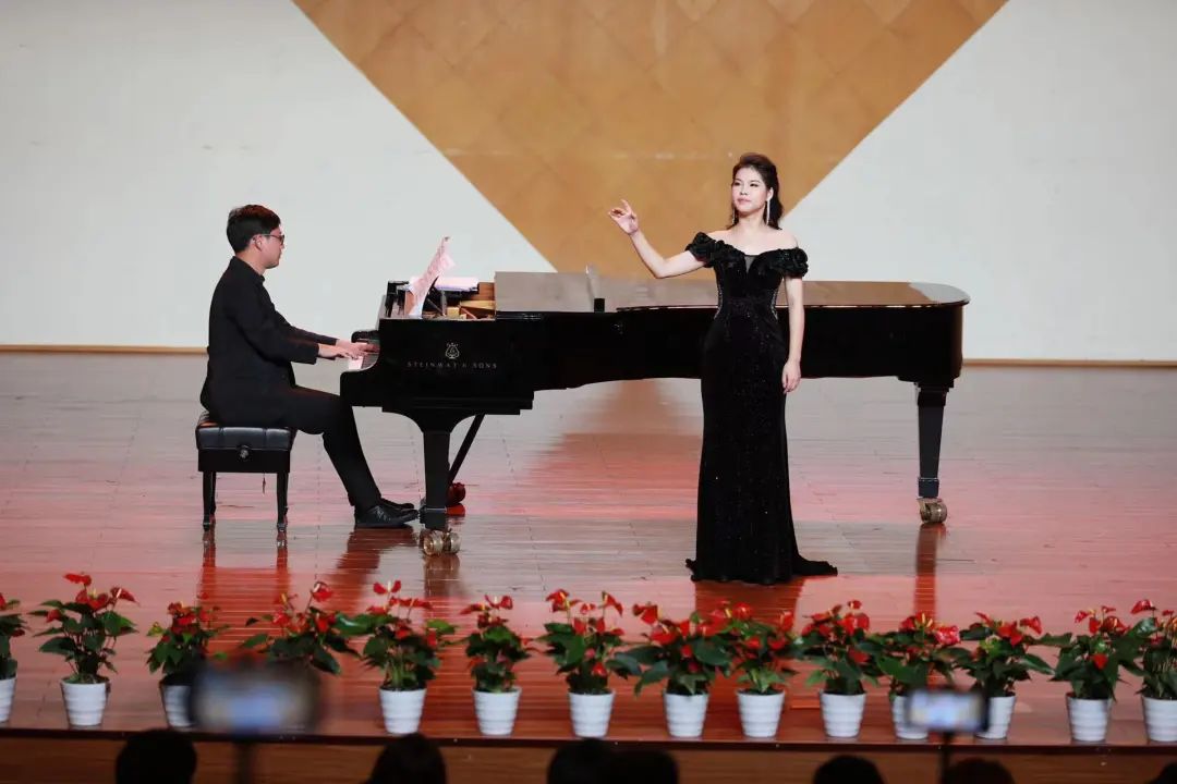 音乐会在热烈的掌声中拉开帷幕,本场音乐会共有十五首曲目,曲目种类丰富、风格多样。两位同学以其饱满的情感、精湛的演唱技巧辅以钢琴再现了声乐艺术的有声维度,以及经典作品中深厚的中华文化底蕴,唱出了喜庆二十大,实现第二个百年奋斗目标的信心和决心。本场音乐会特邀青年钢琴家,音乐学院青年教师熊壮壮担任艺术指导,特邀青年男中音,音乐学院21届优秀毕业生周余亿强担任助演嘉宾。两位学生的专业教师朱卓凡登台演唱一曲《奇妙的和谐》,为音乐会倾情助力。